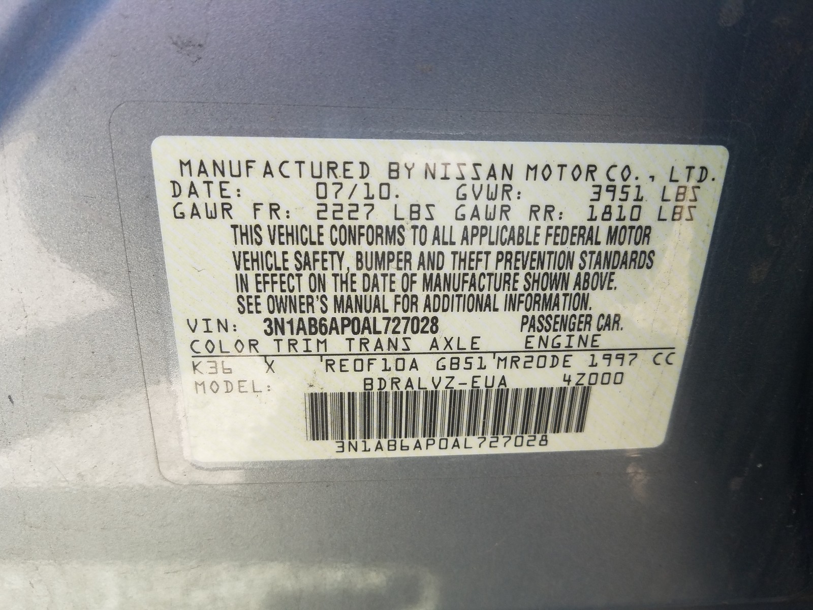 VIN: 3N1AB6AP0AL727028