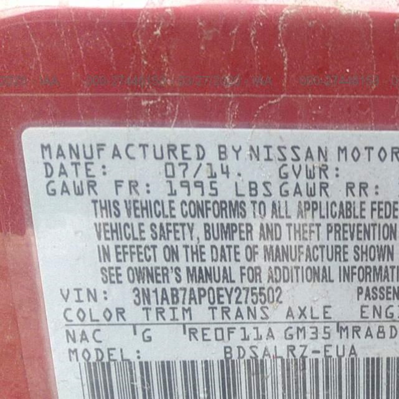 VIN: 3N1AB7AP0EY275502
