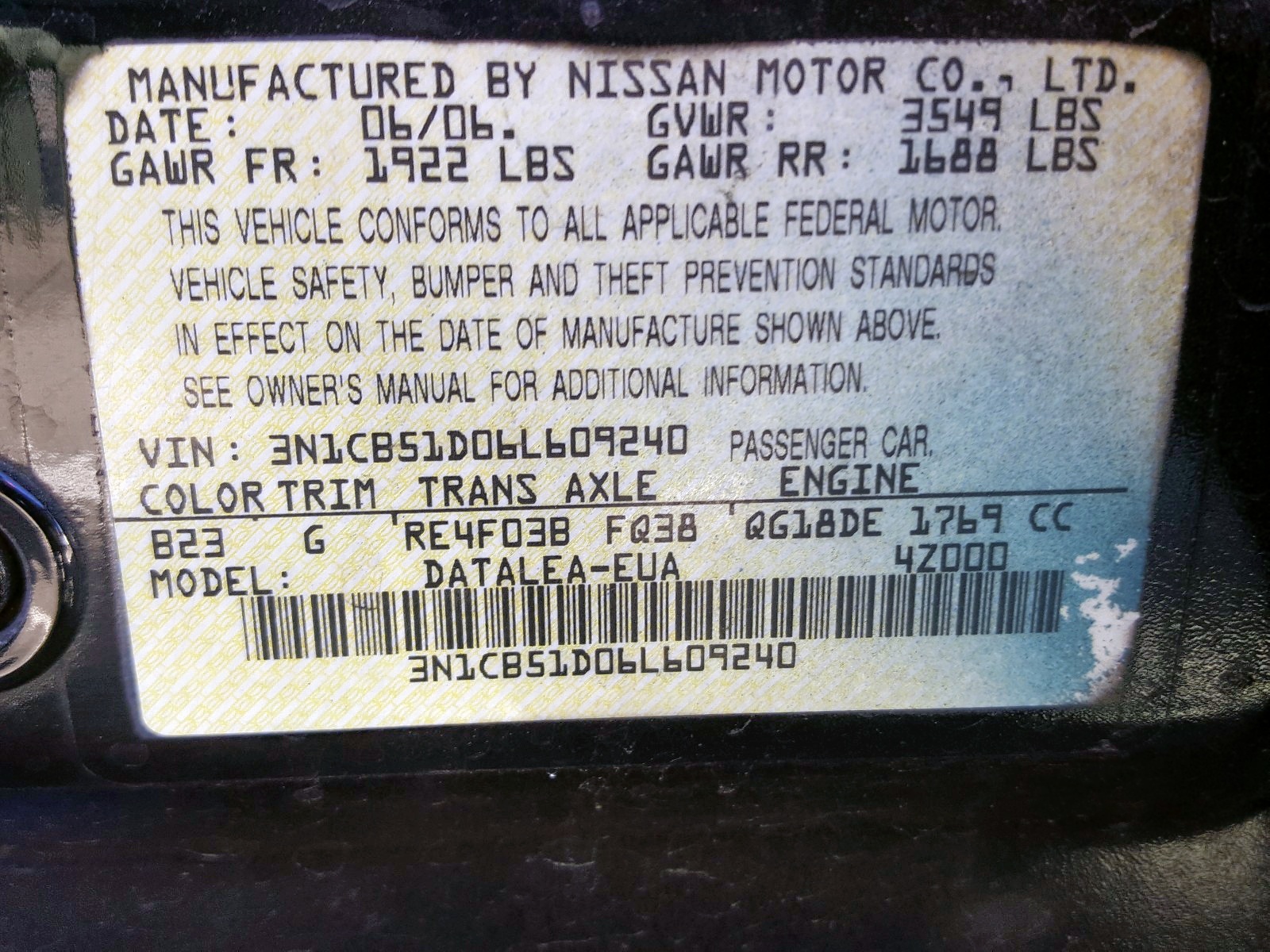 VIN: 3N1CB51D06L609240