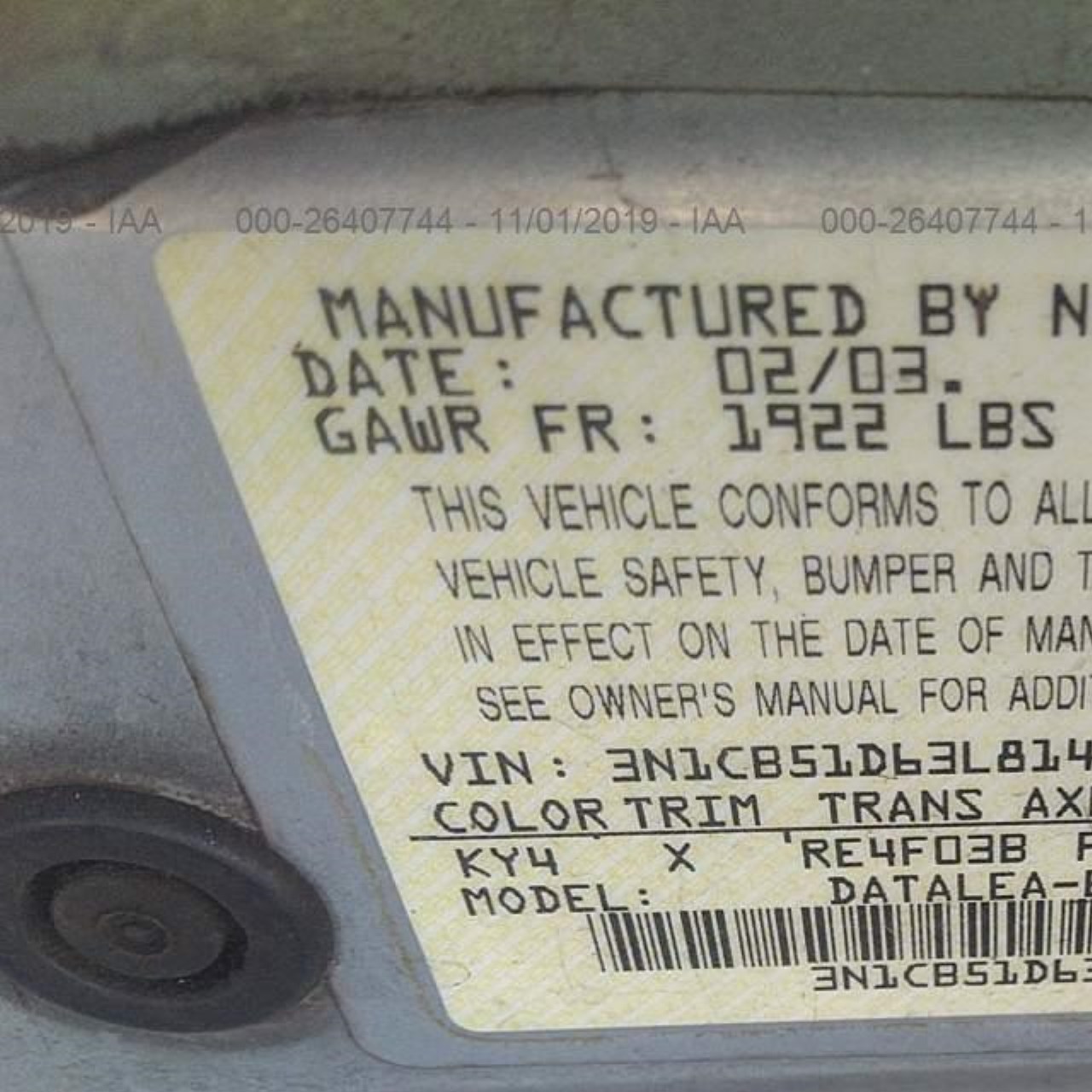 VIN: 3N1CB51D63L814301