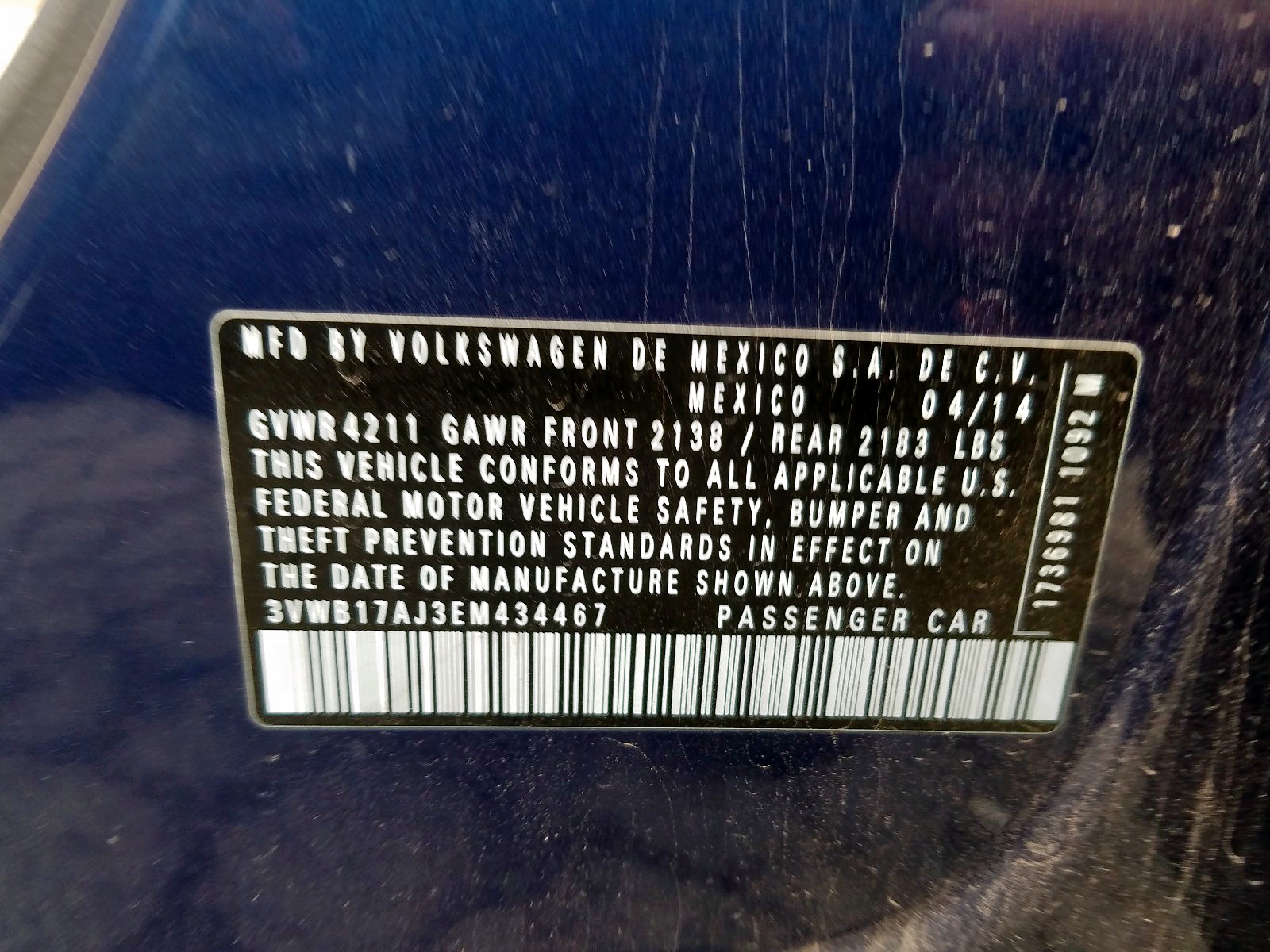 VIN: 3VWB17AJ3EM434467