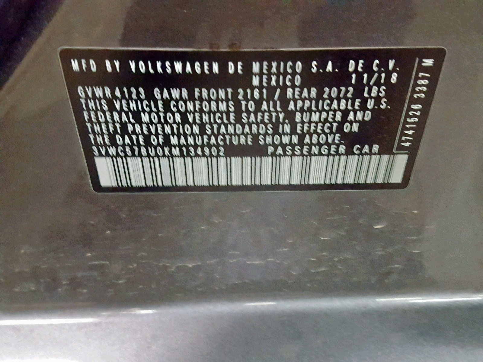 VIN: 3VWC57BU0KM134902