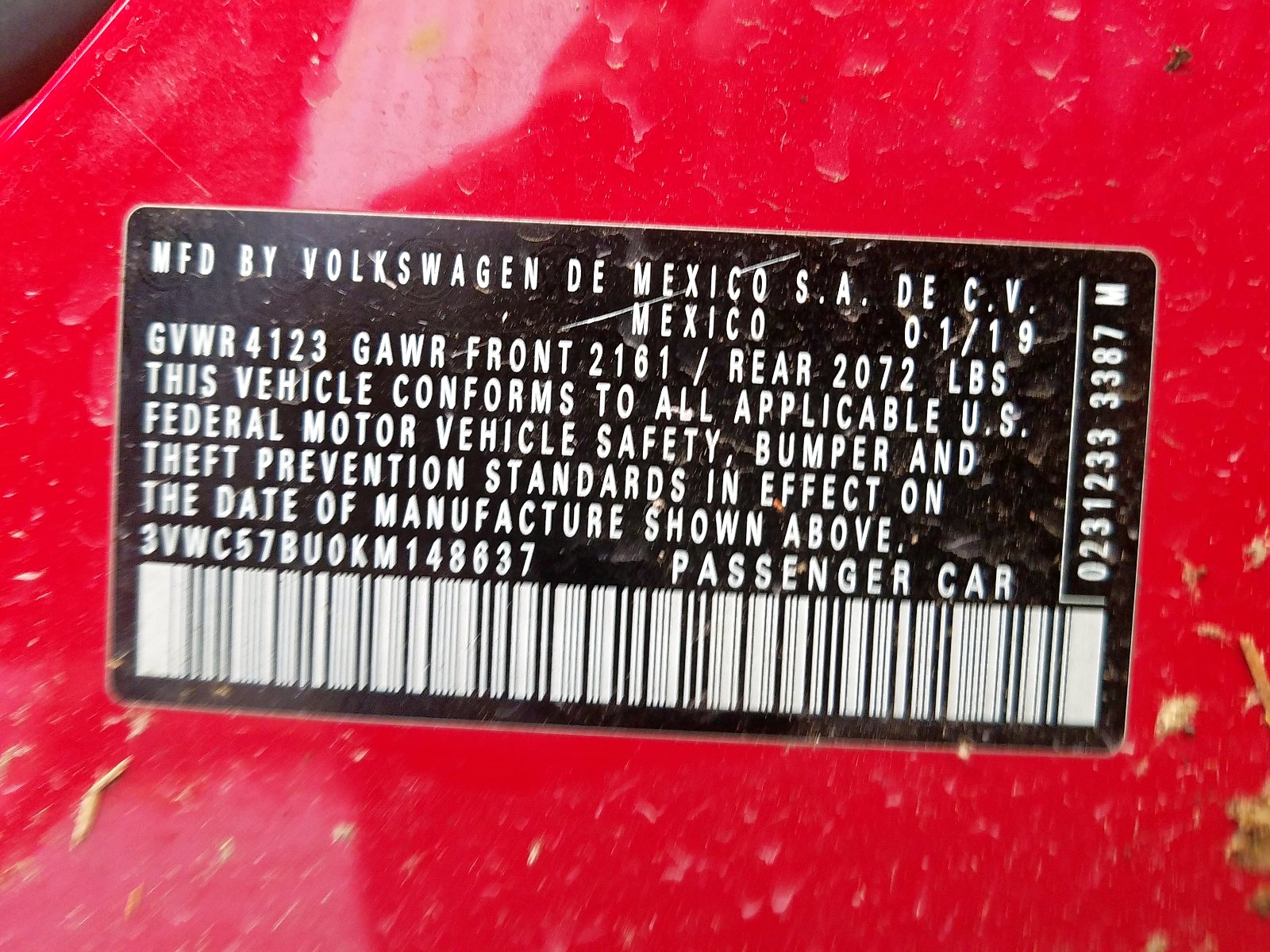 VIN: 3VWC57BU0KM148637
