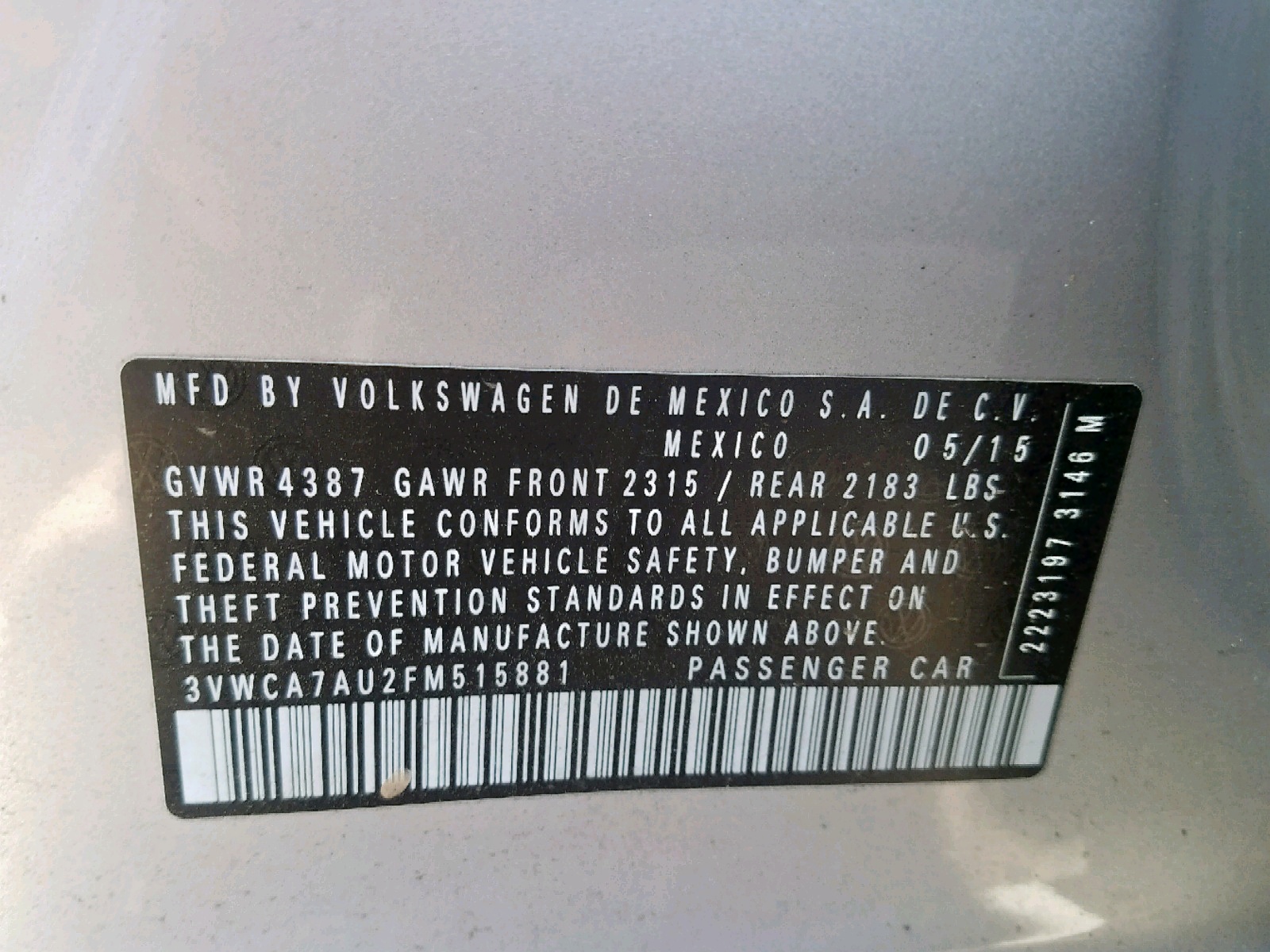 VIN: 3VWCA7AU2FM515881