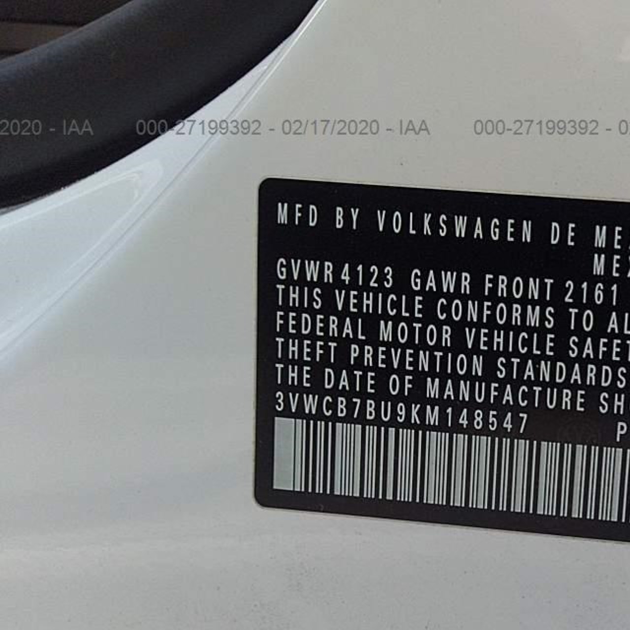 VIN: 3VWCB7BU9KM148547