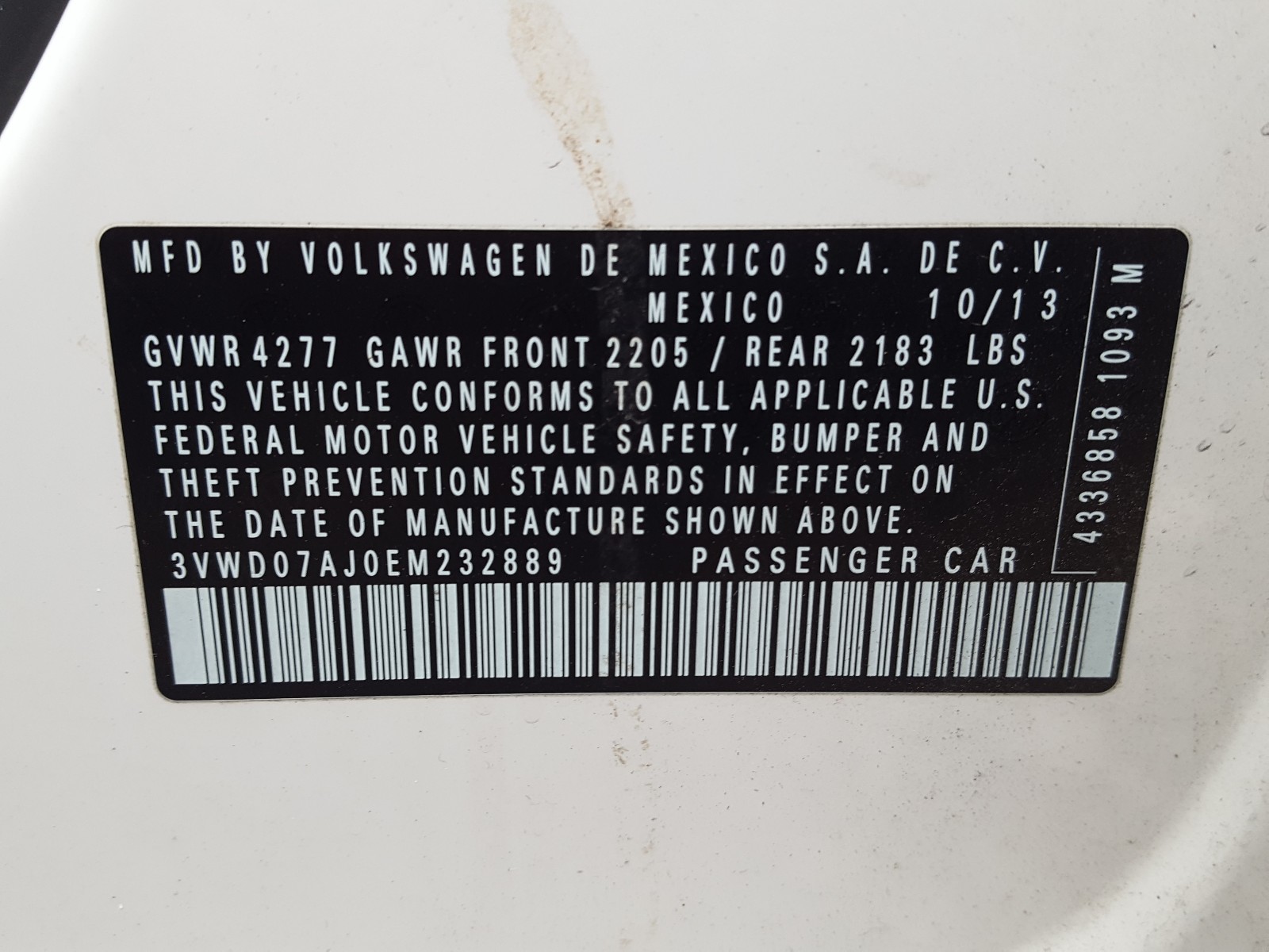 VIN: 3VWD07AJ0EM232889