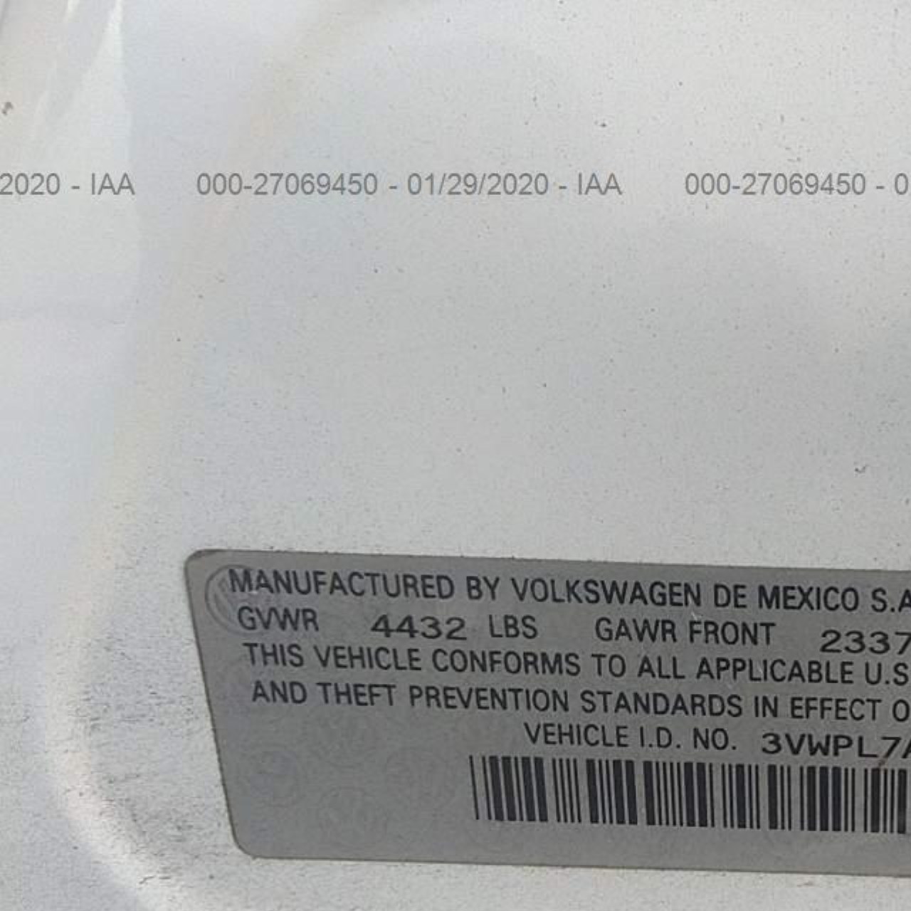 VIN: 3VWPL7AJ0BM687547