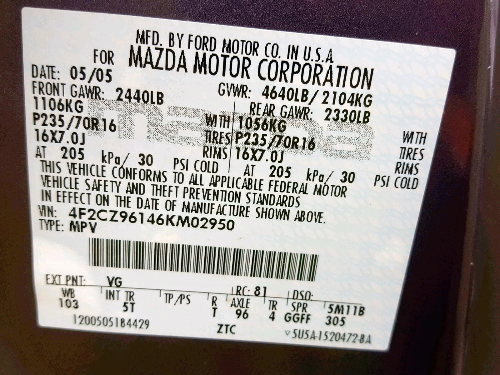 VIN: 4F2CZ96146KM02950