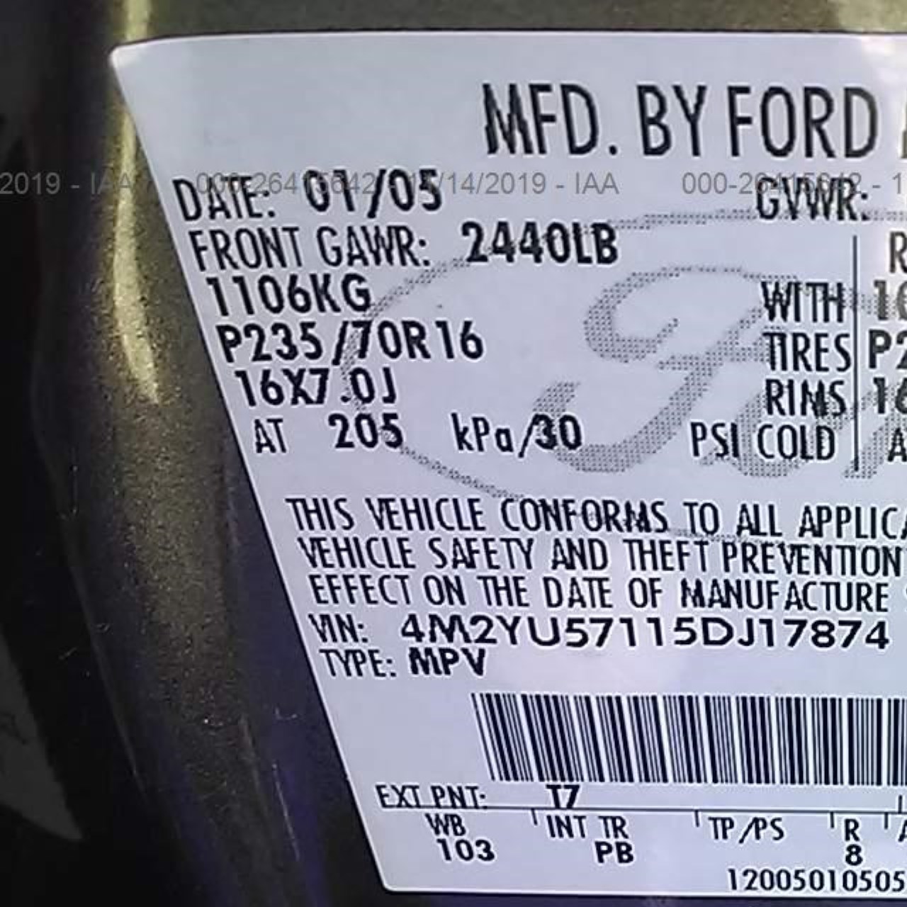 VIN: 4M2YU57115DJ17874