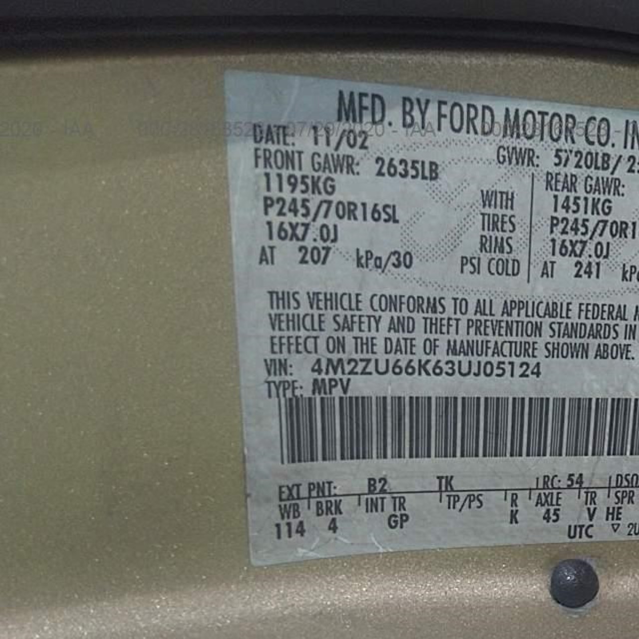 VIN: 4M2ZU66K63UJ05124
