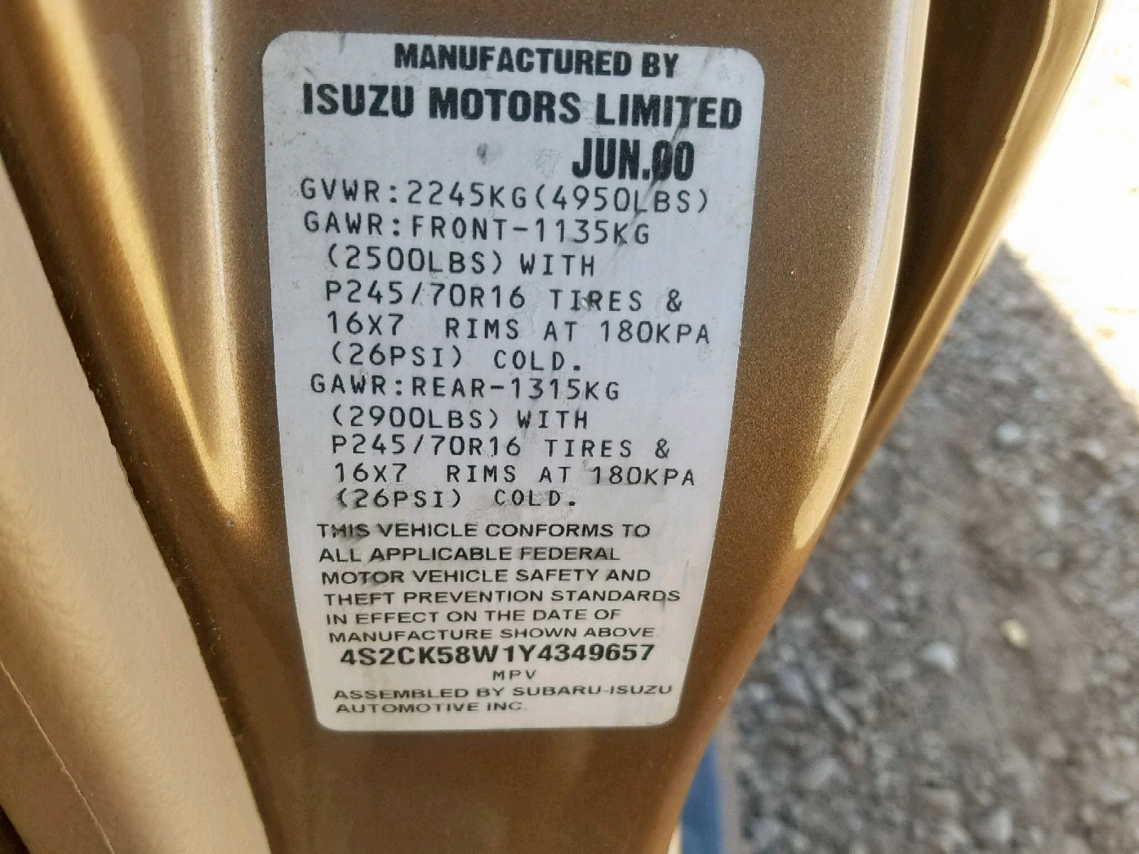 VIN: 4S2CK58W1Y4349657