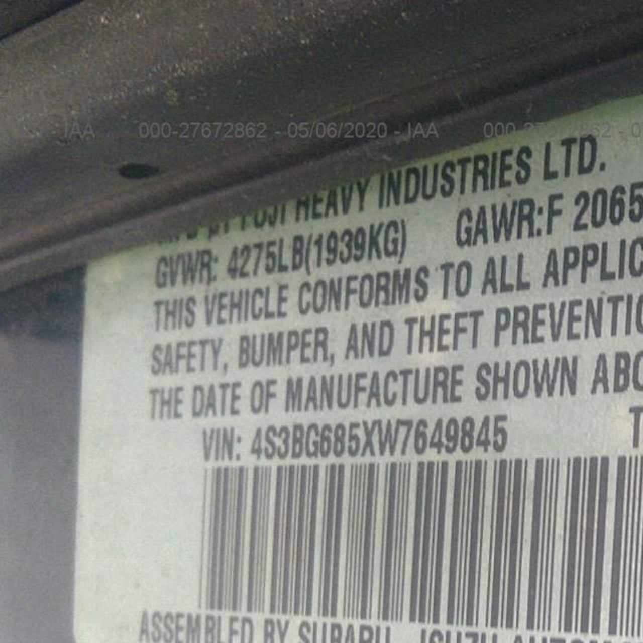 VIN: 4S3BG685XW7649845