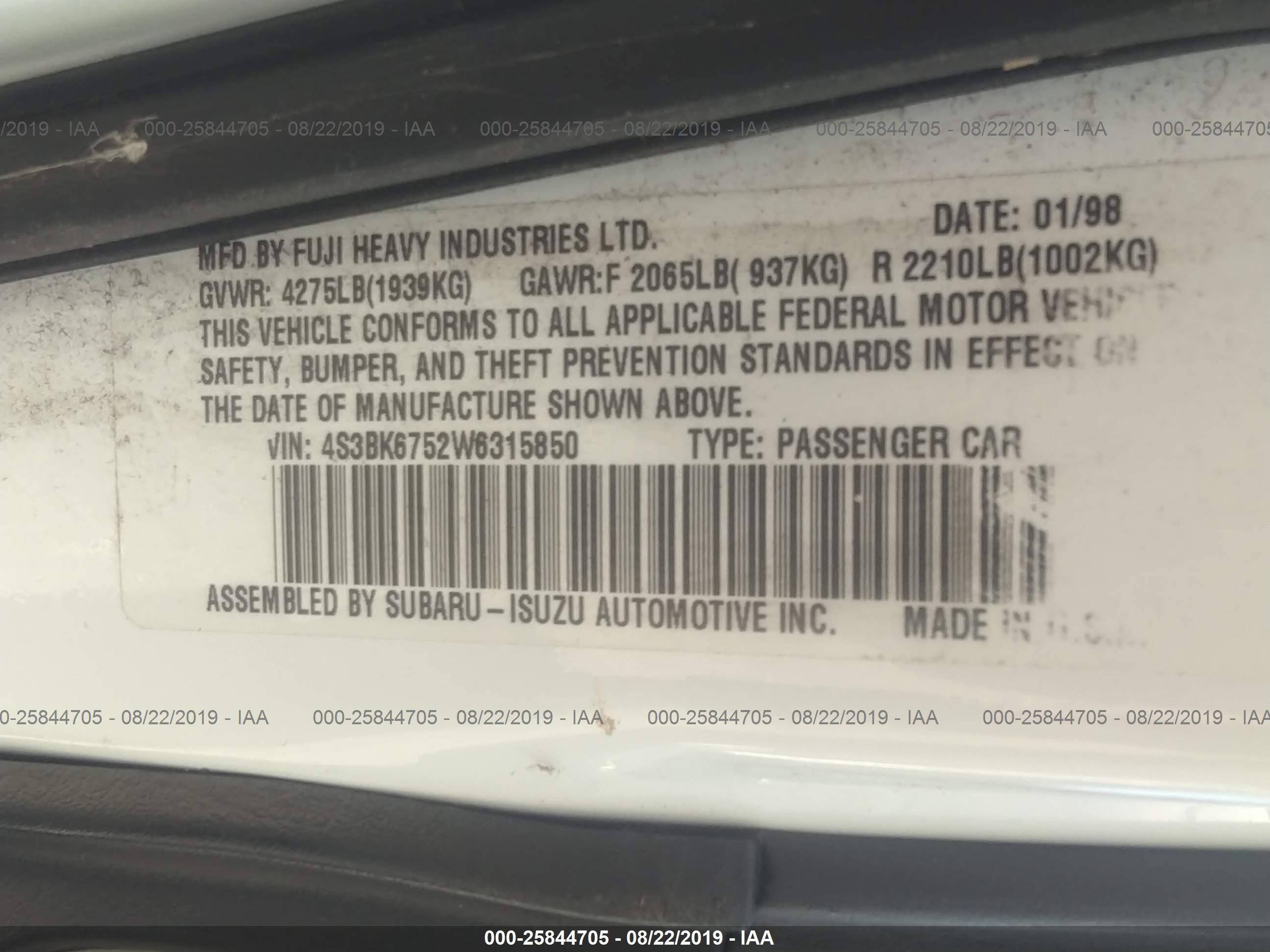 VIN: 4S3BK6752W6315850