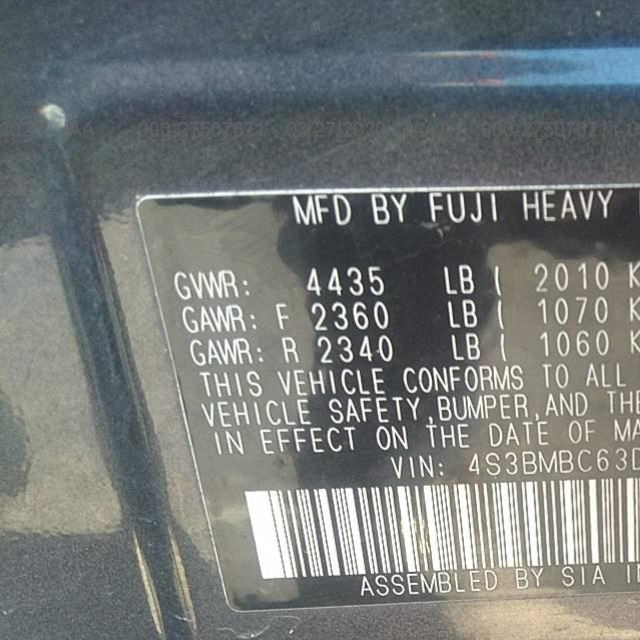 VIN: 4S3BMBC63D3022765