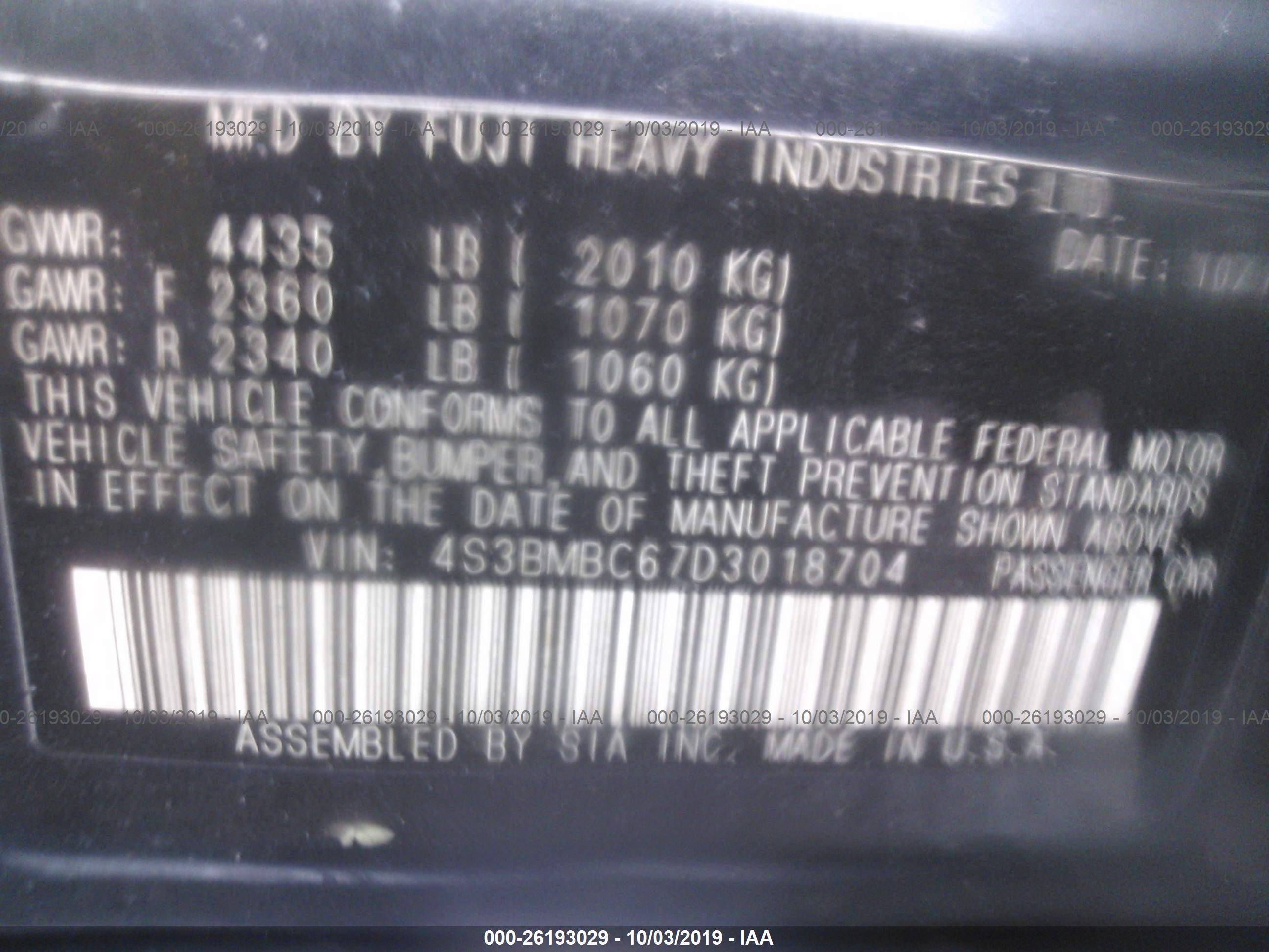 VIN: 4S3BMBC67D3018704
