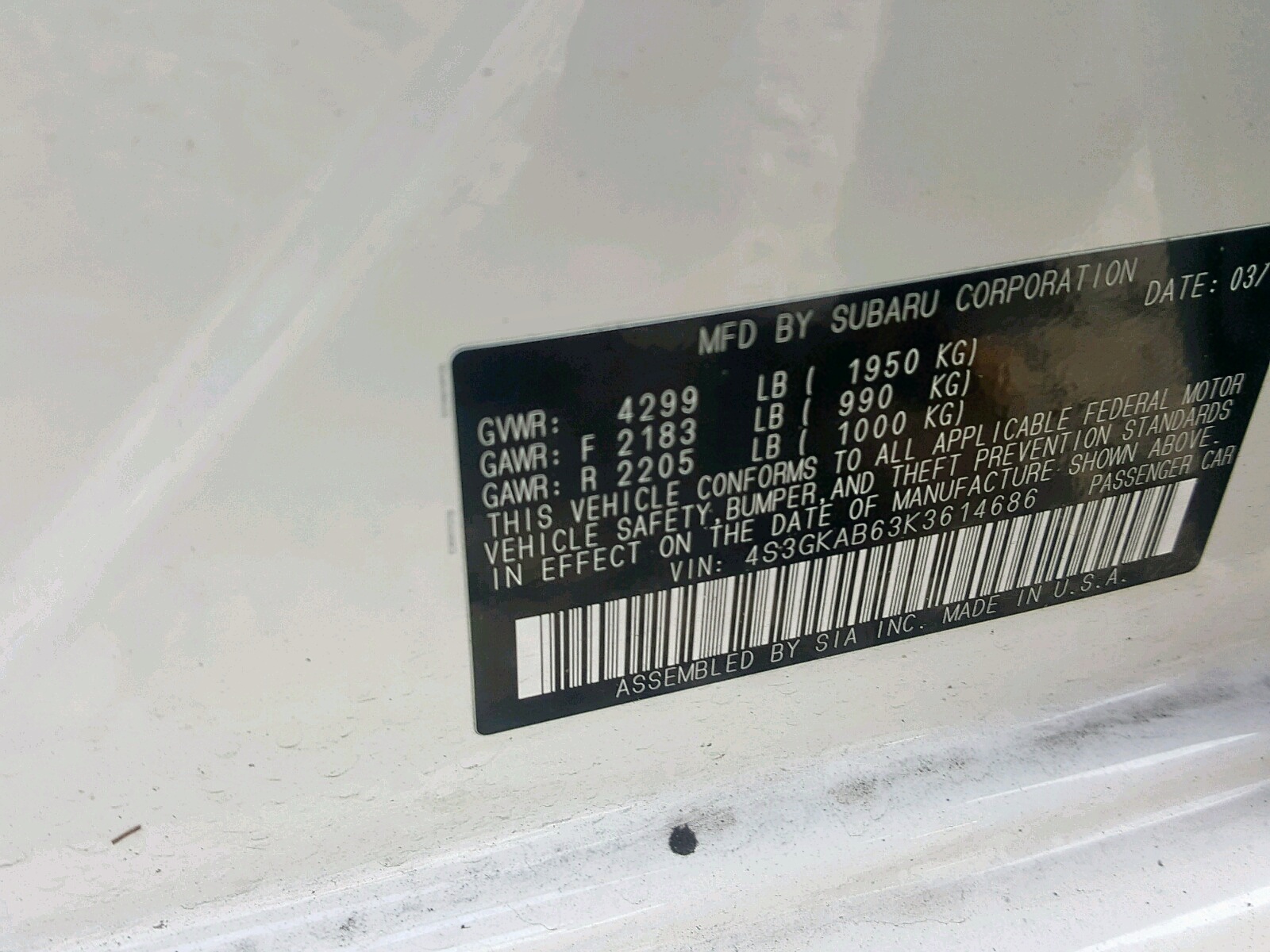 VIN: 4S3GKAB63K3614686