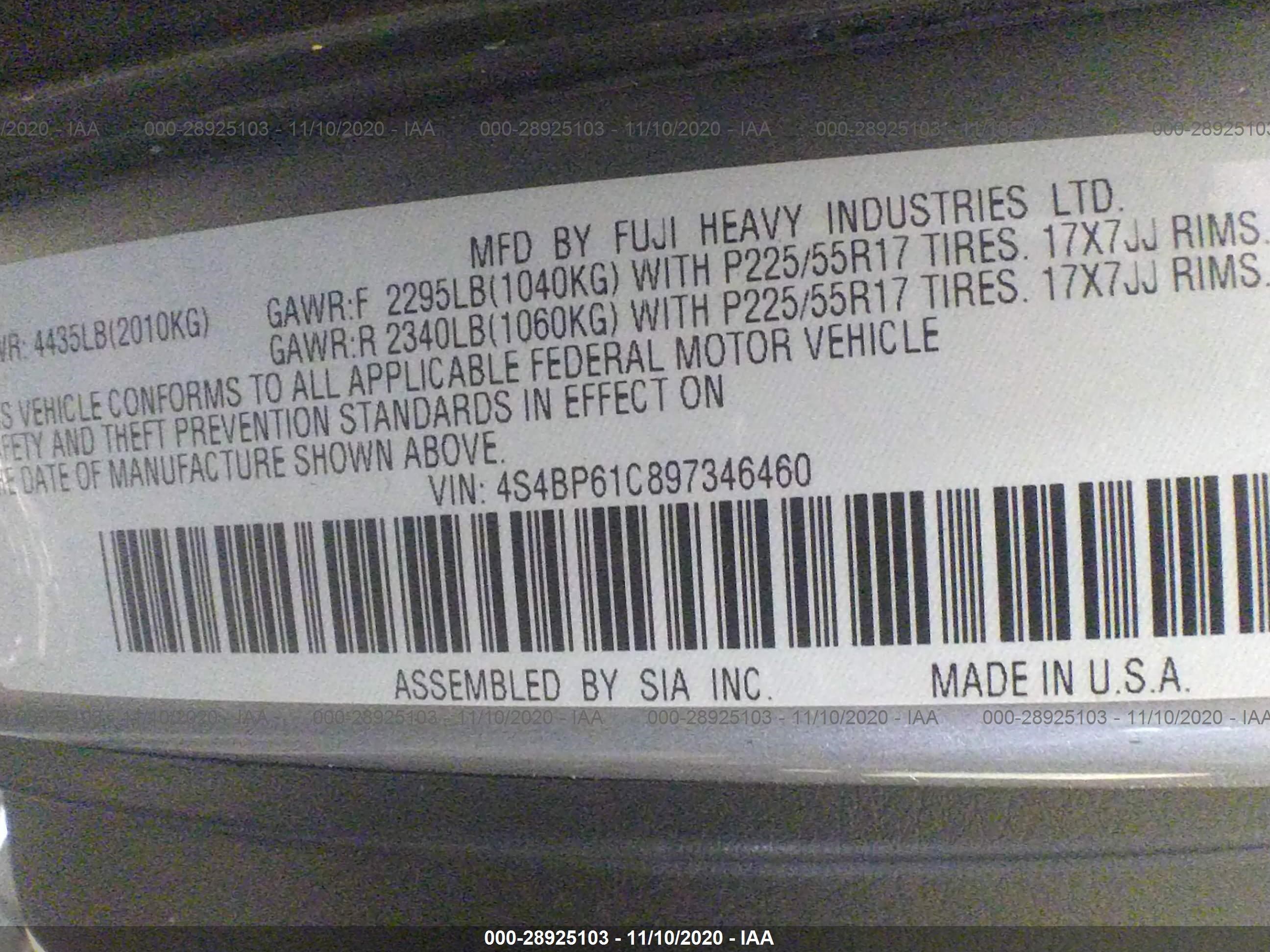 VIN: 4S4BP61C897346460