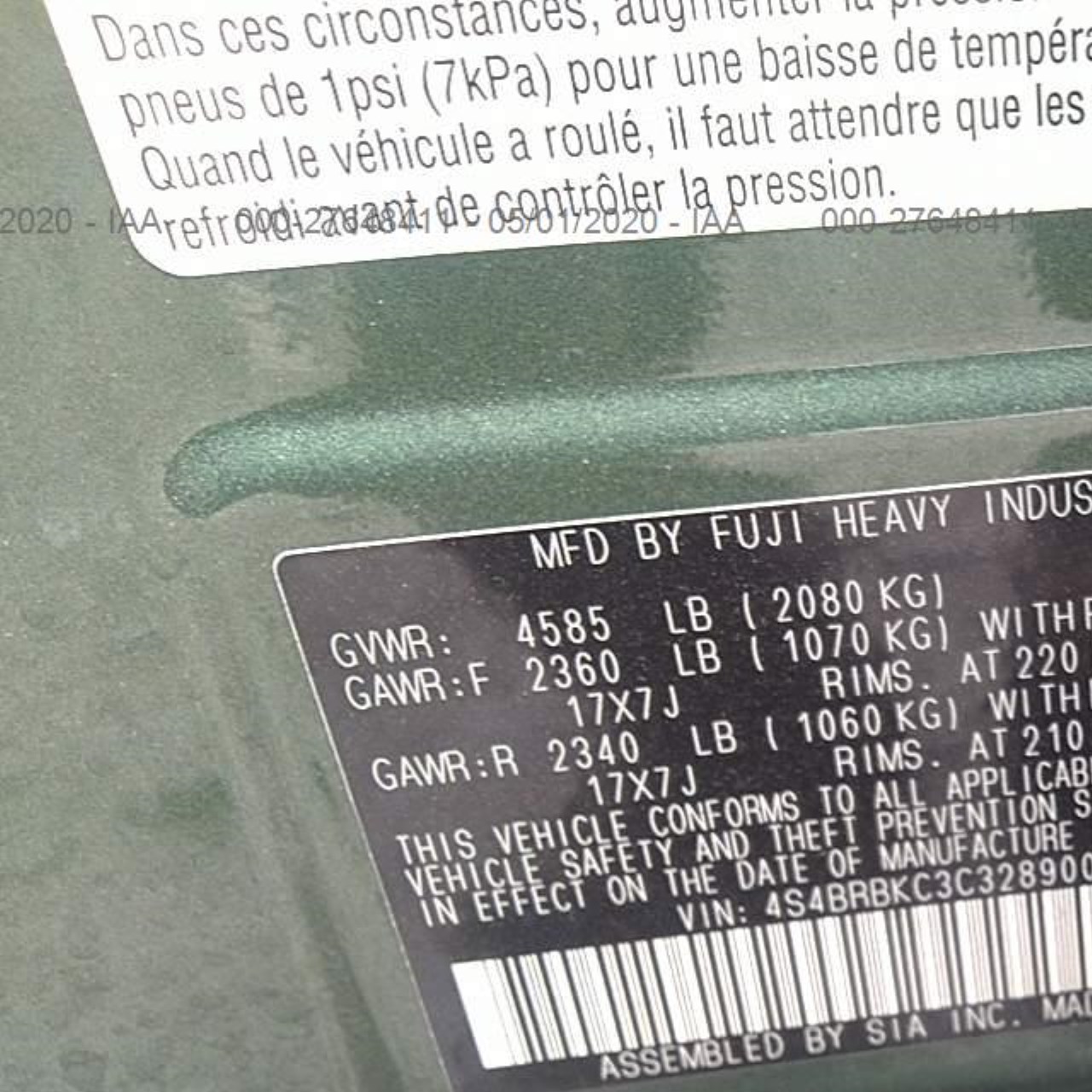 VIN: 4S4BRBKC3C3289004