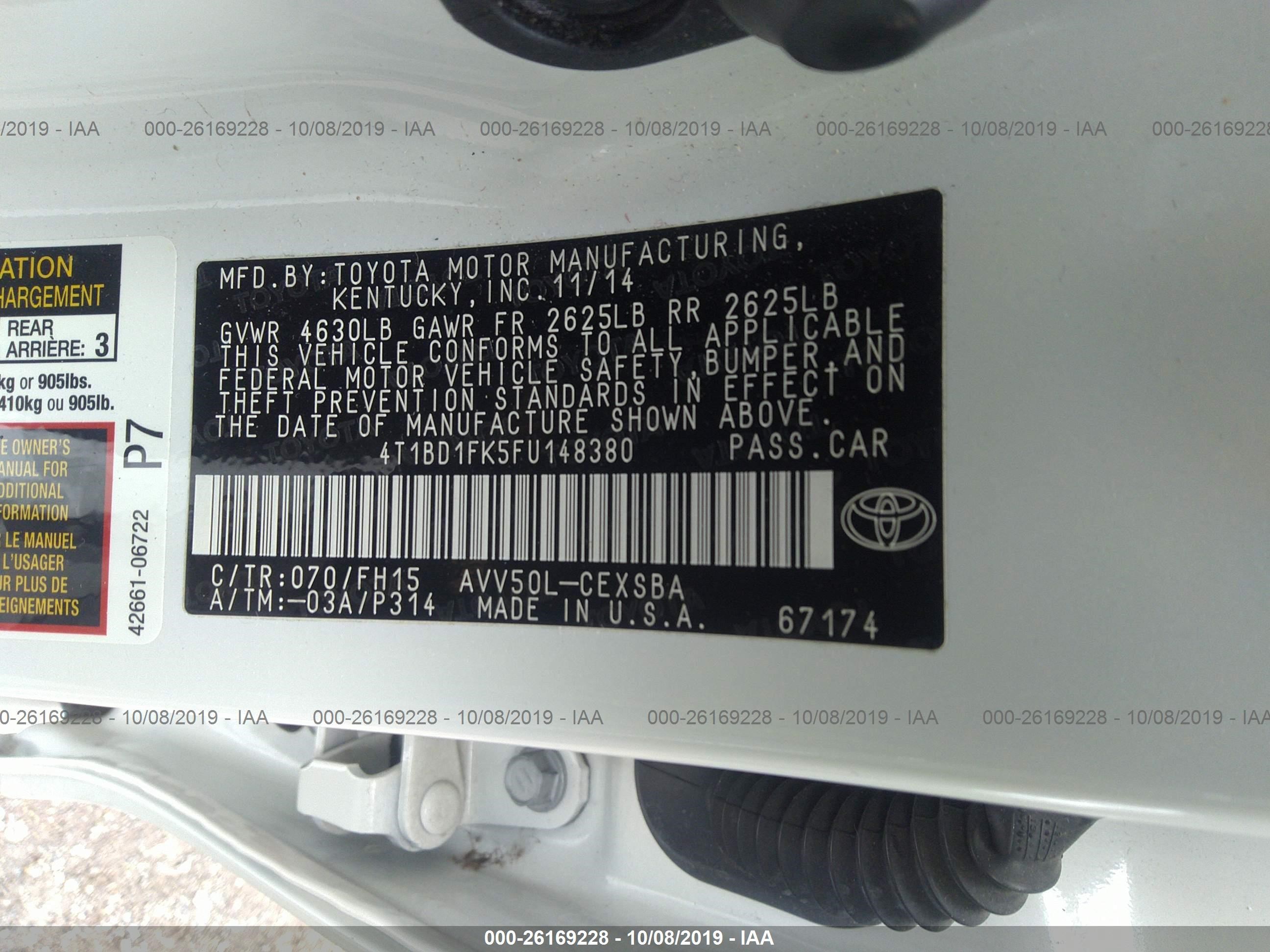 VIN: 4T1BD1FK5FU148380