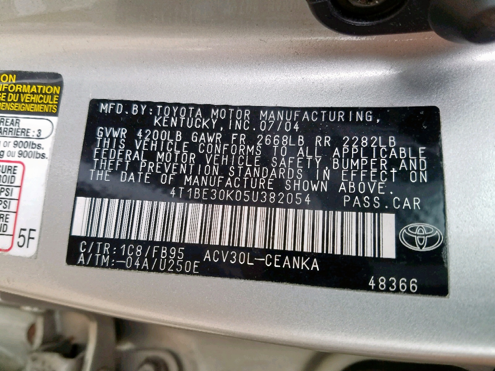VIN: 4T1BE30K05U382054