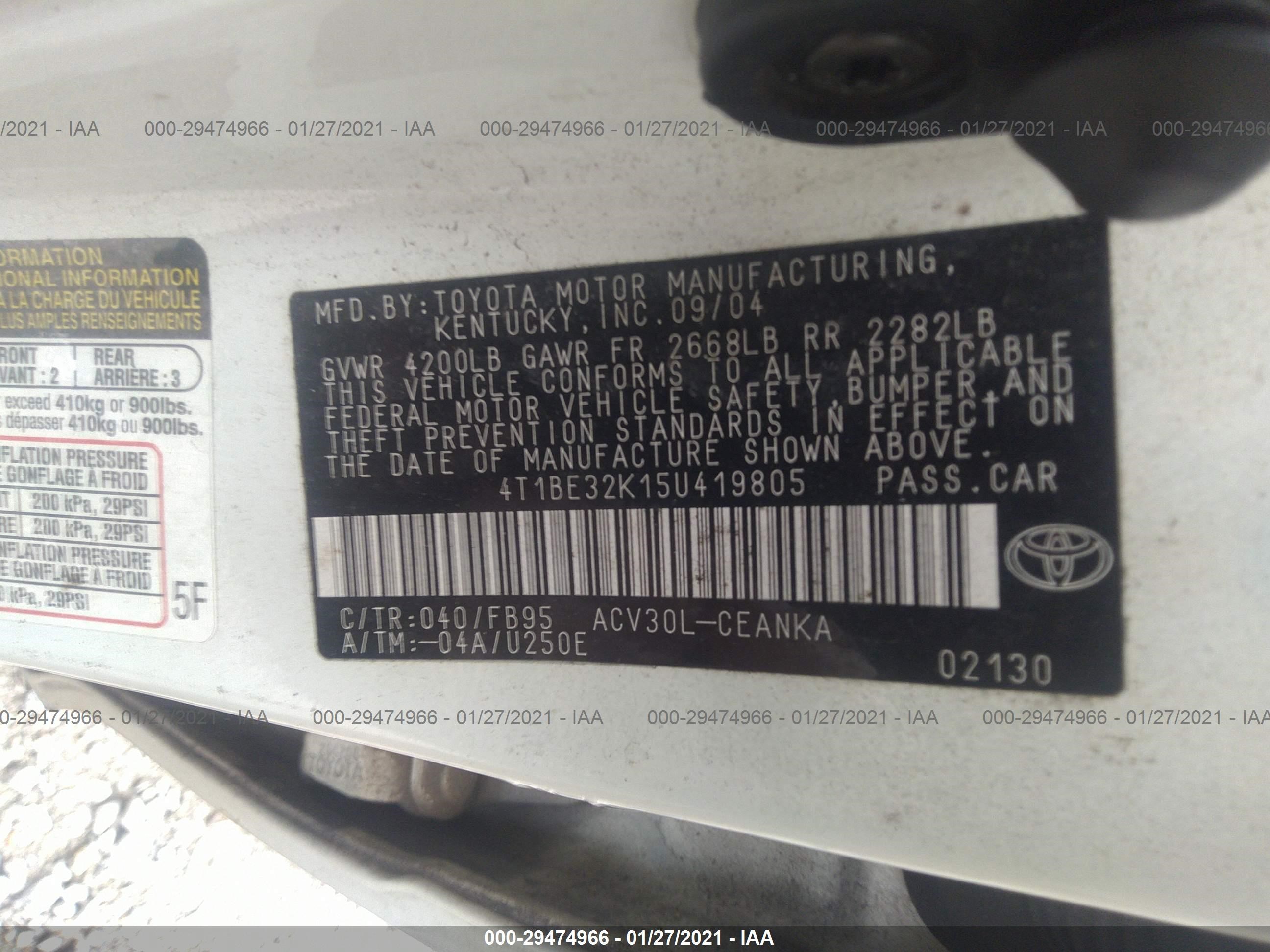 VIN: 4T1BE32K15U419805