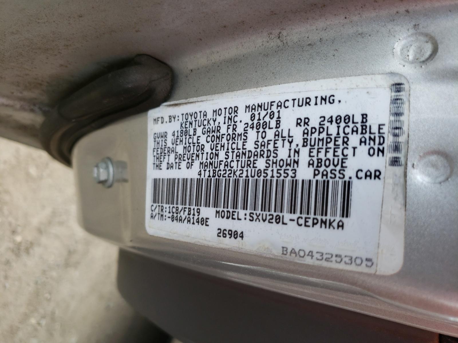 VIN: 4T1BG22K21U051553