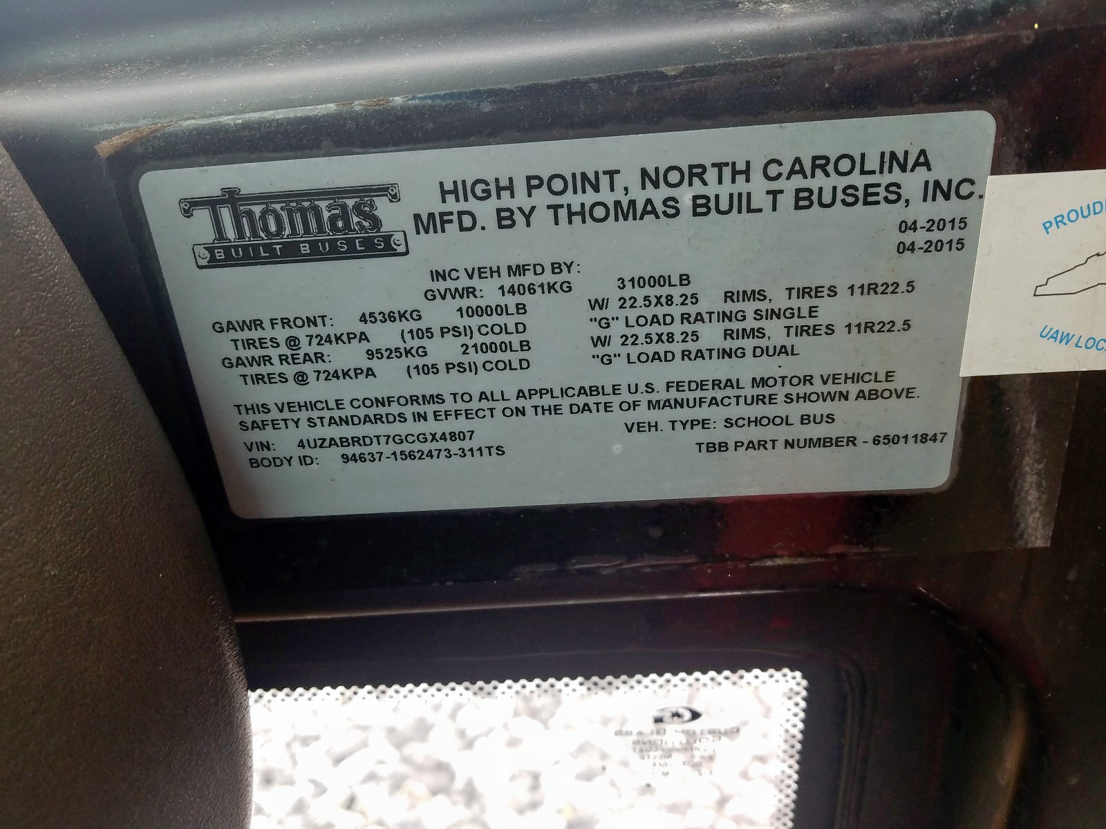 VIN: 4UZABRDT7GCGX4807