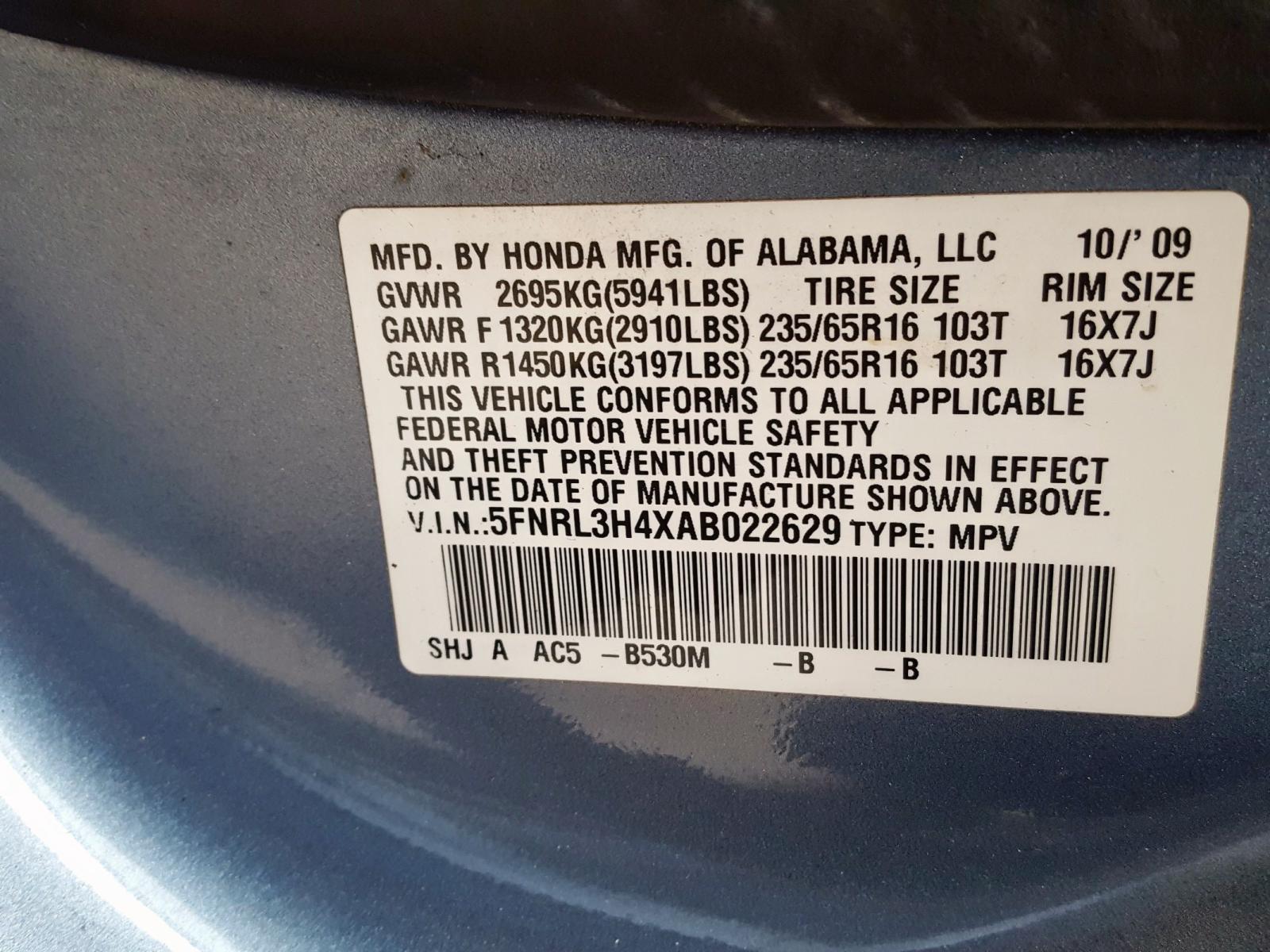 VIN: 5FNRL3H4XAB022629