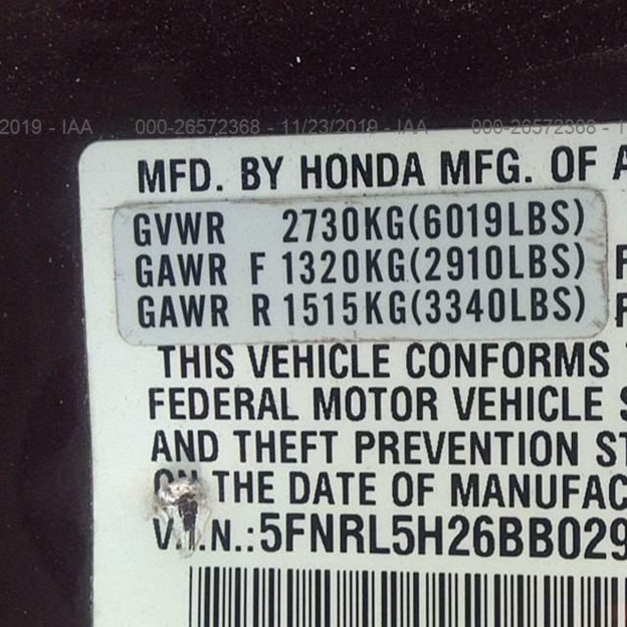 VIN: 5FNRL5H26BB029606