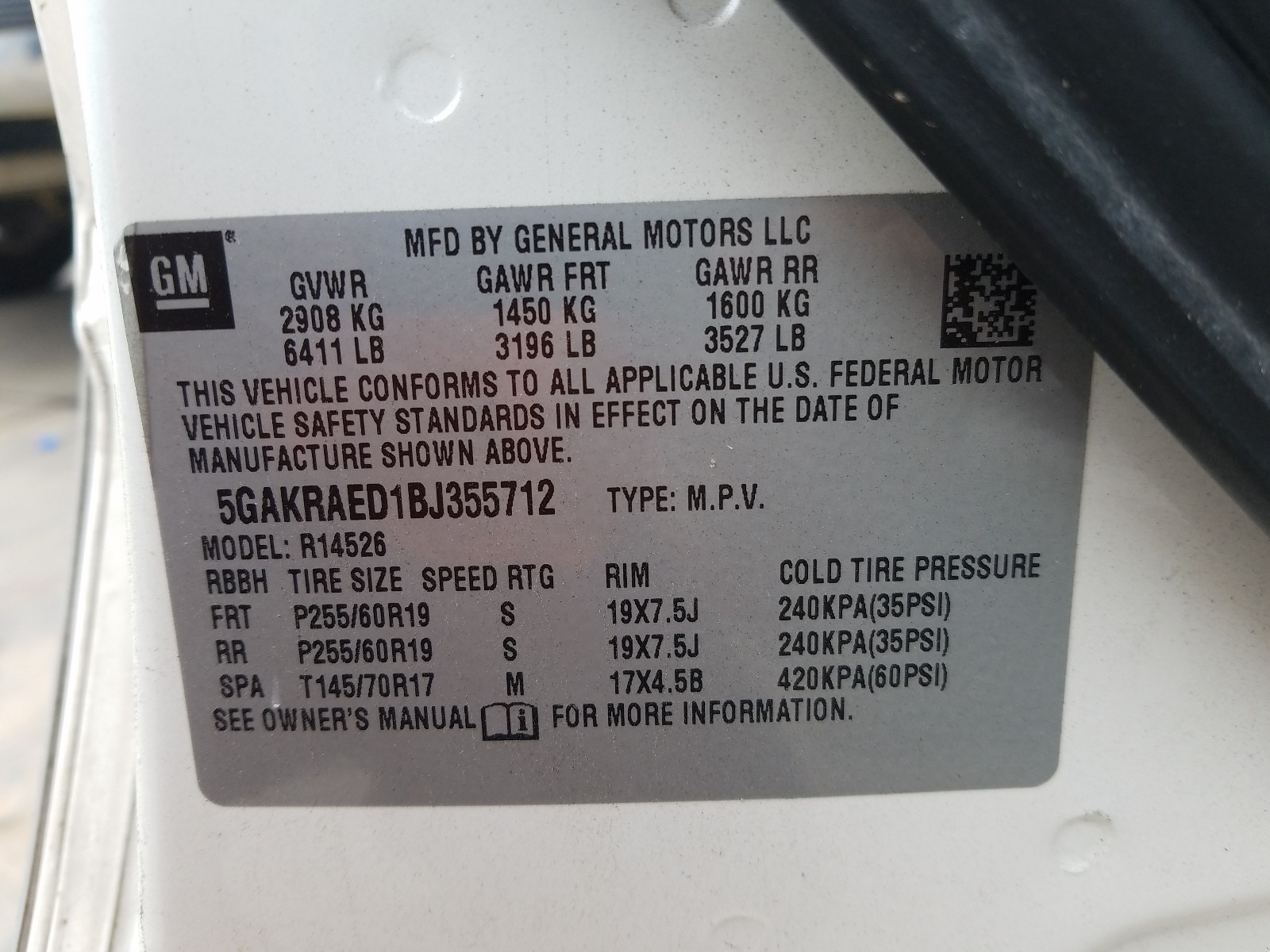 VIN: 5GAKRAED1BJ355712