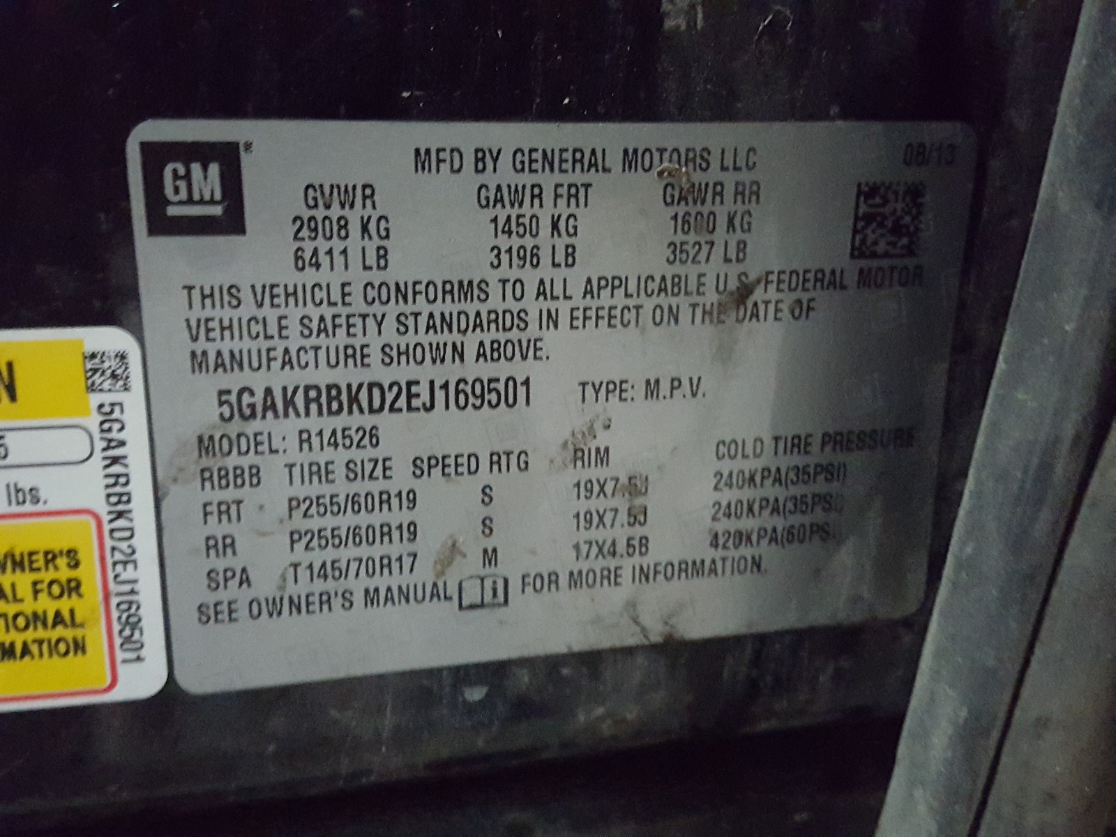 VIN: 5GAKRBKD2EJ169501