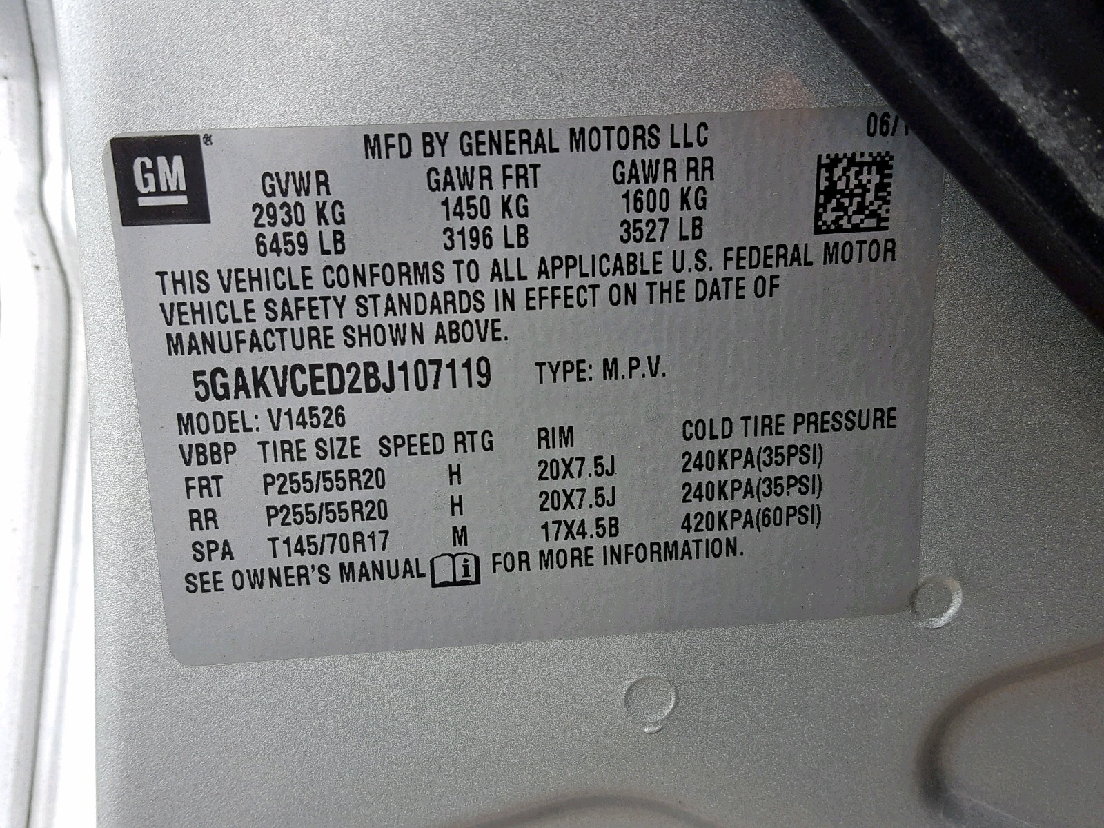 VIN: 5GAKVCED2BJ107119