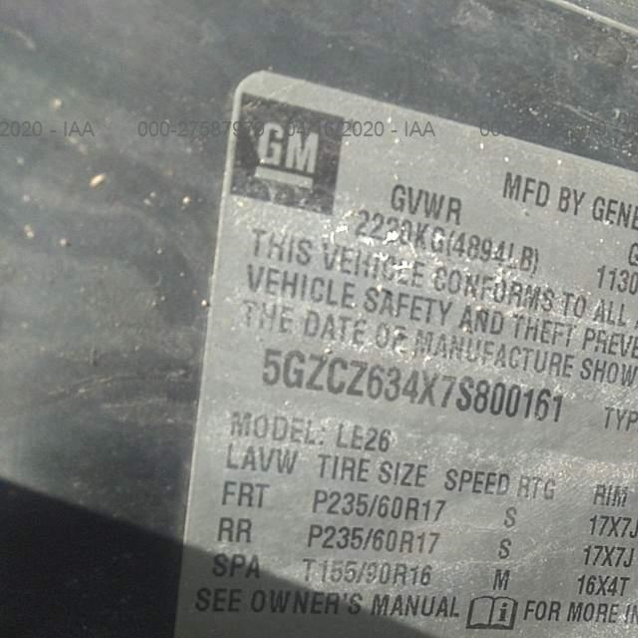 VIN: 5GZCZ634X7S800161