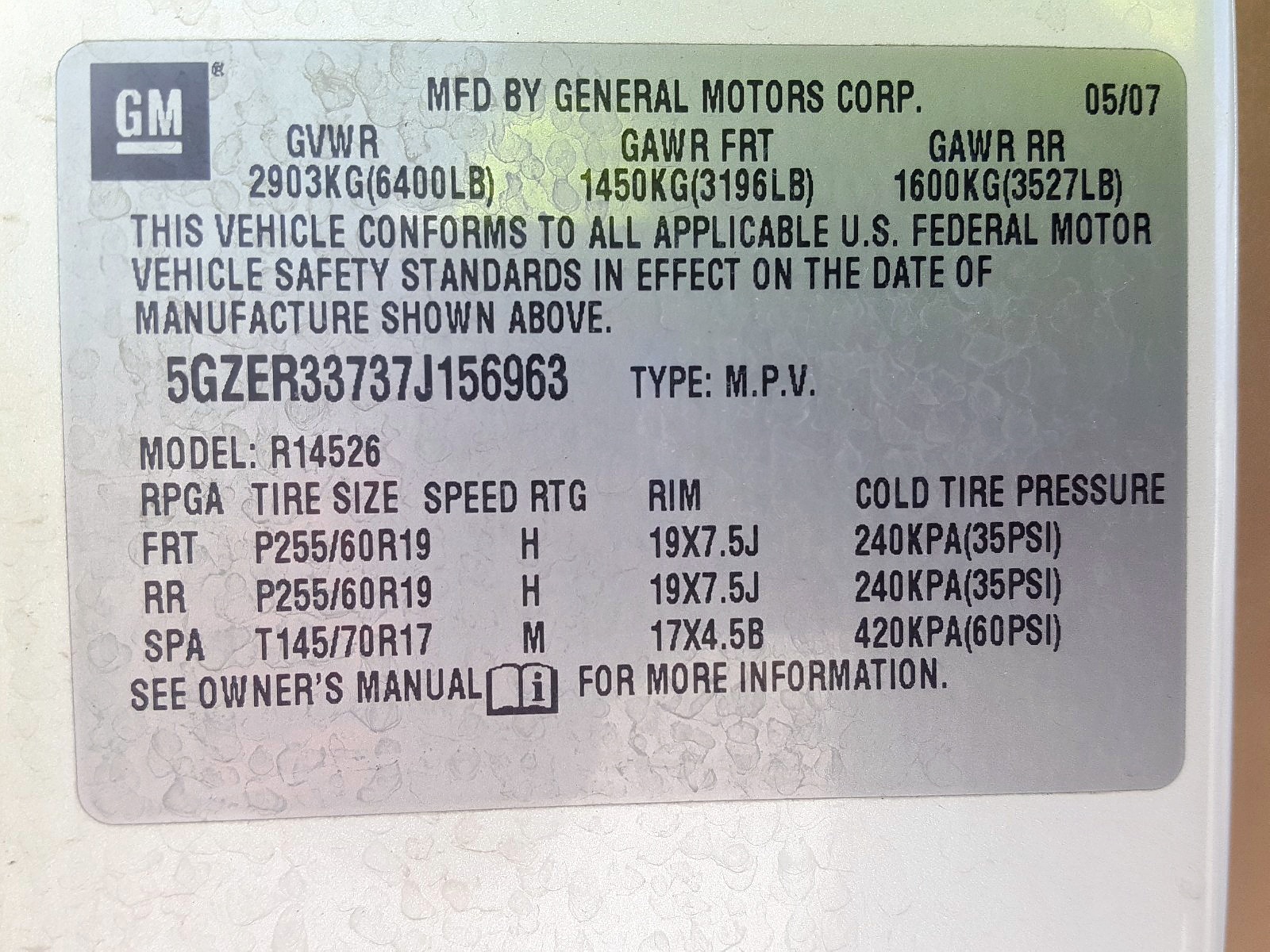 VIN: 5GZER33737J156963
