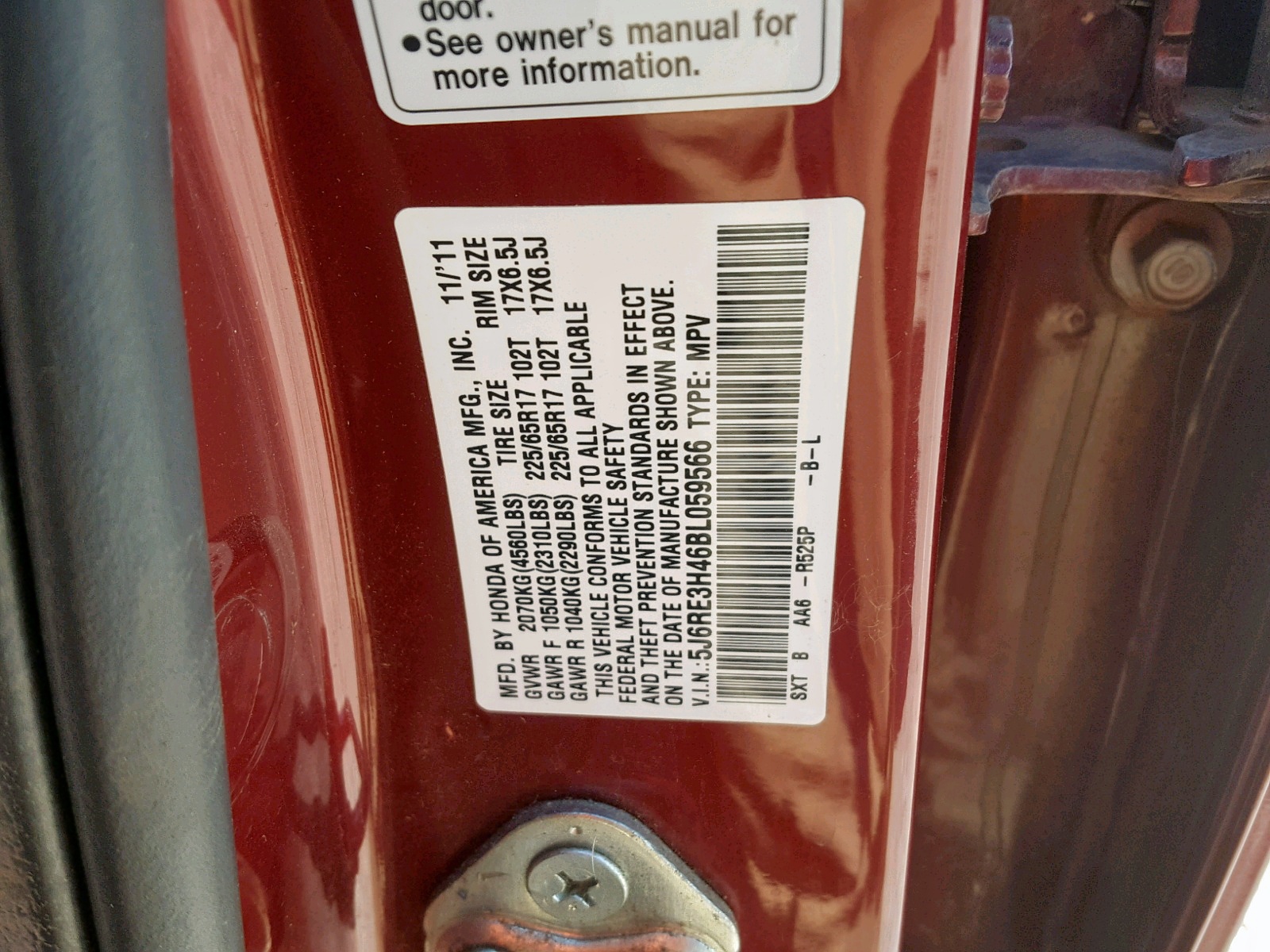 VIN: 5J6RE3H46BL059566