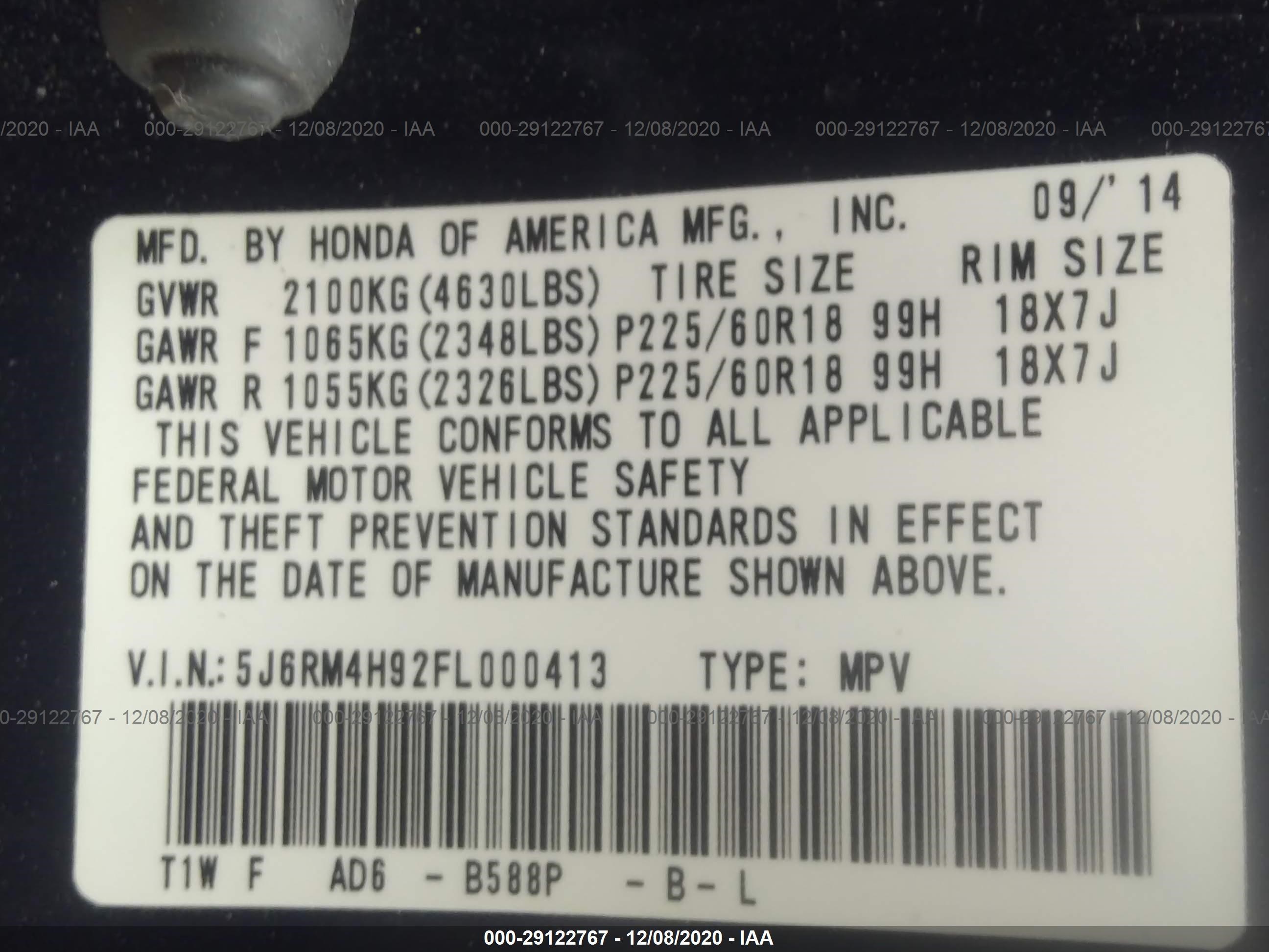 VIN: 5J6RM4H92FL000413