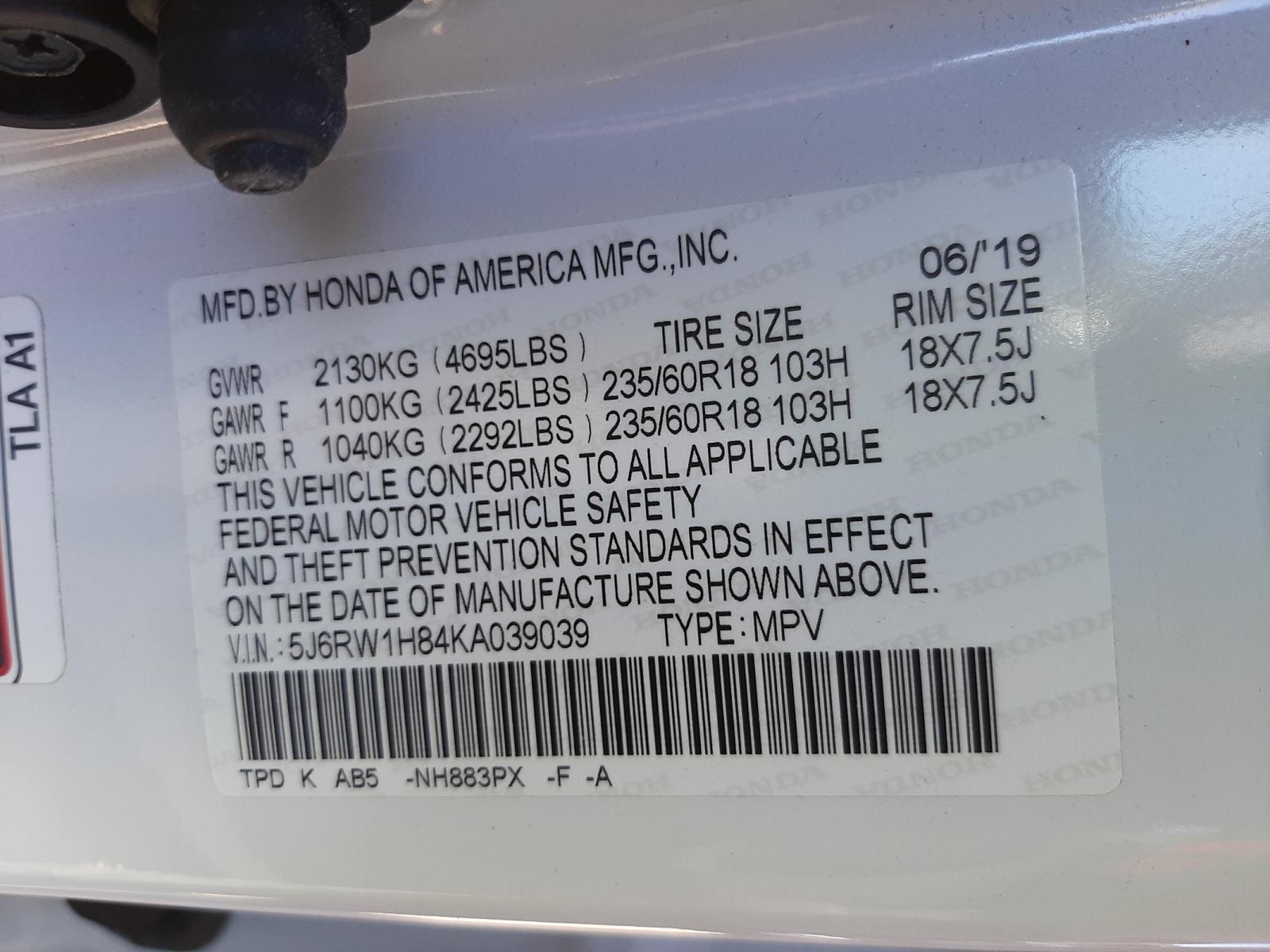VIN: 5J6RW1H84KA039039