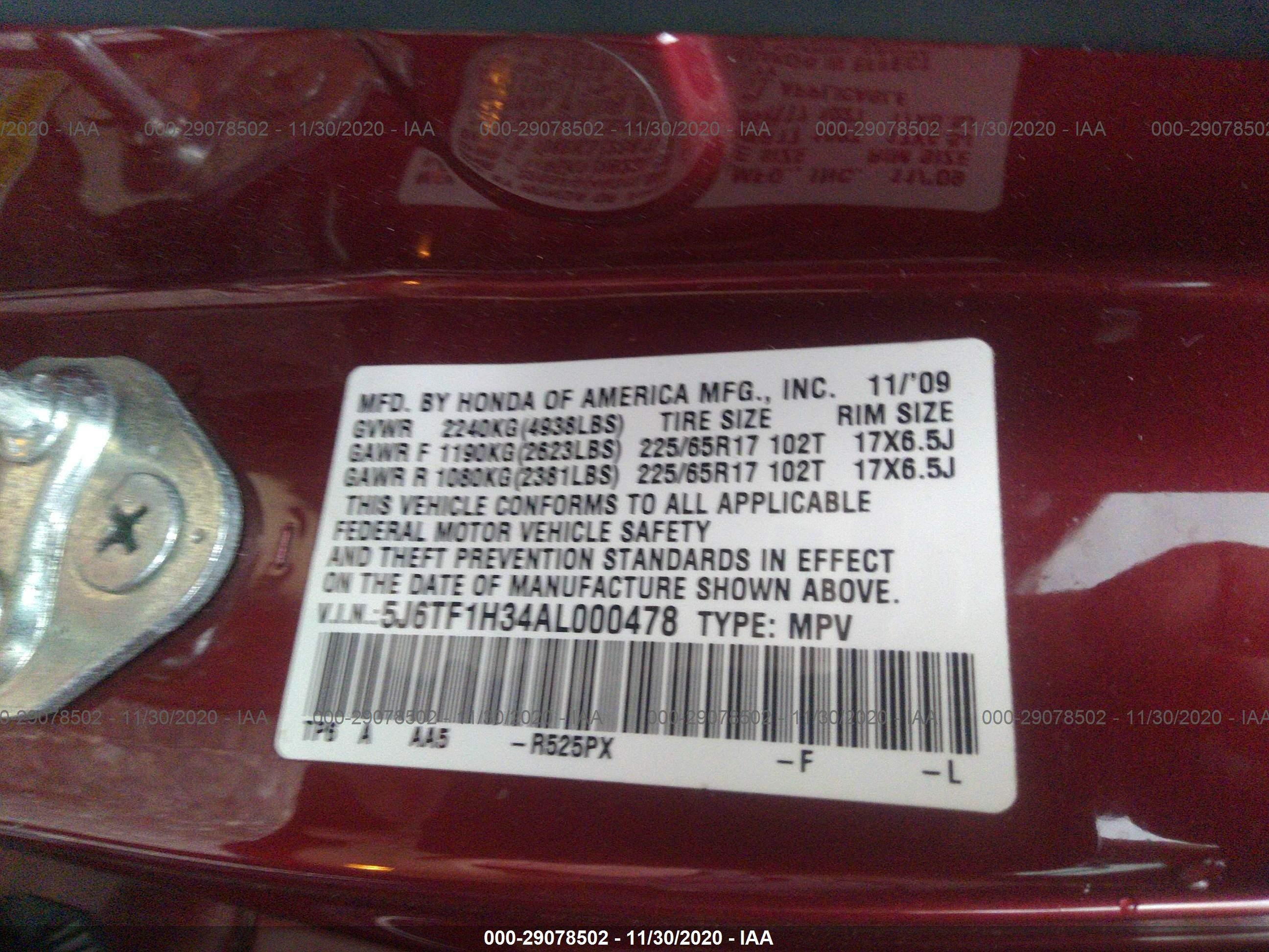 VIN: 5J6TF1H34AL000478