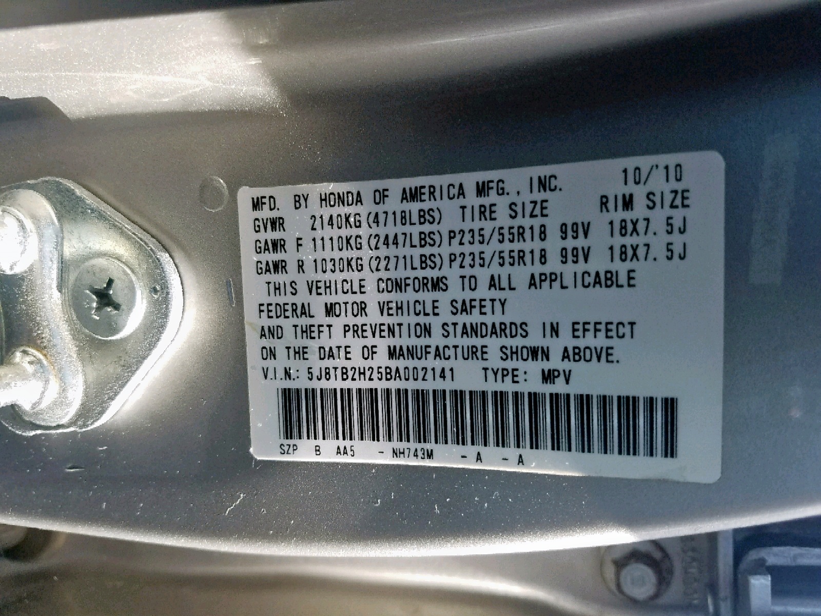 VIN: 5J8TB2H25BA002141