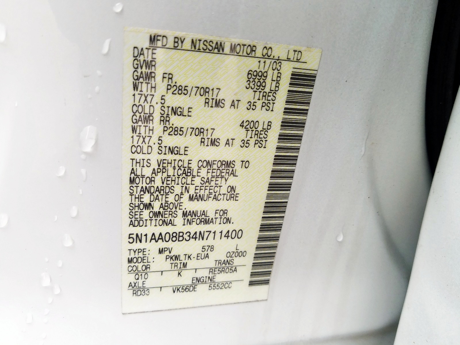 VIN: 5N1AA08B34N711400
