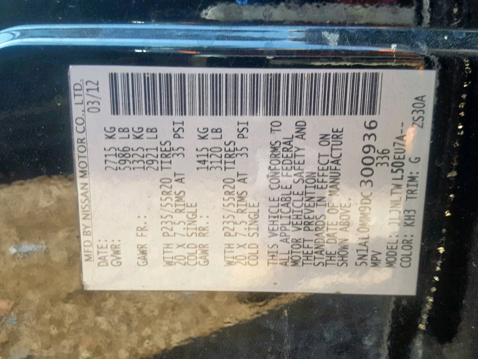 VIN: 5N1AL0MM9DC300936