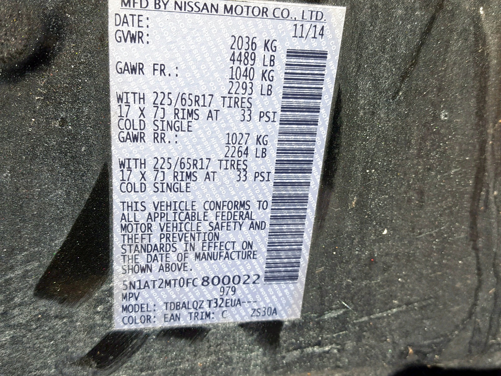 VIN: 5N1AT2MT0FC800022