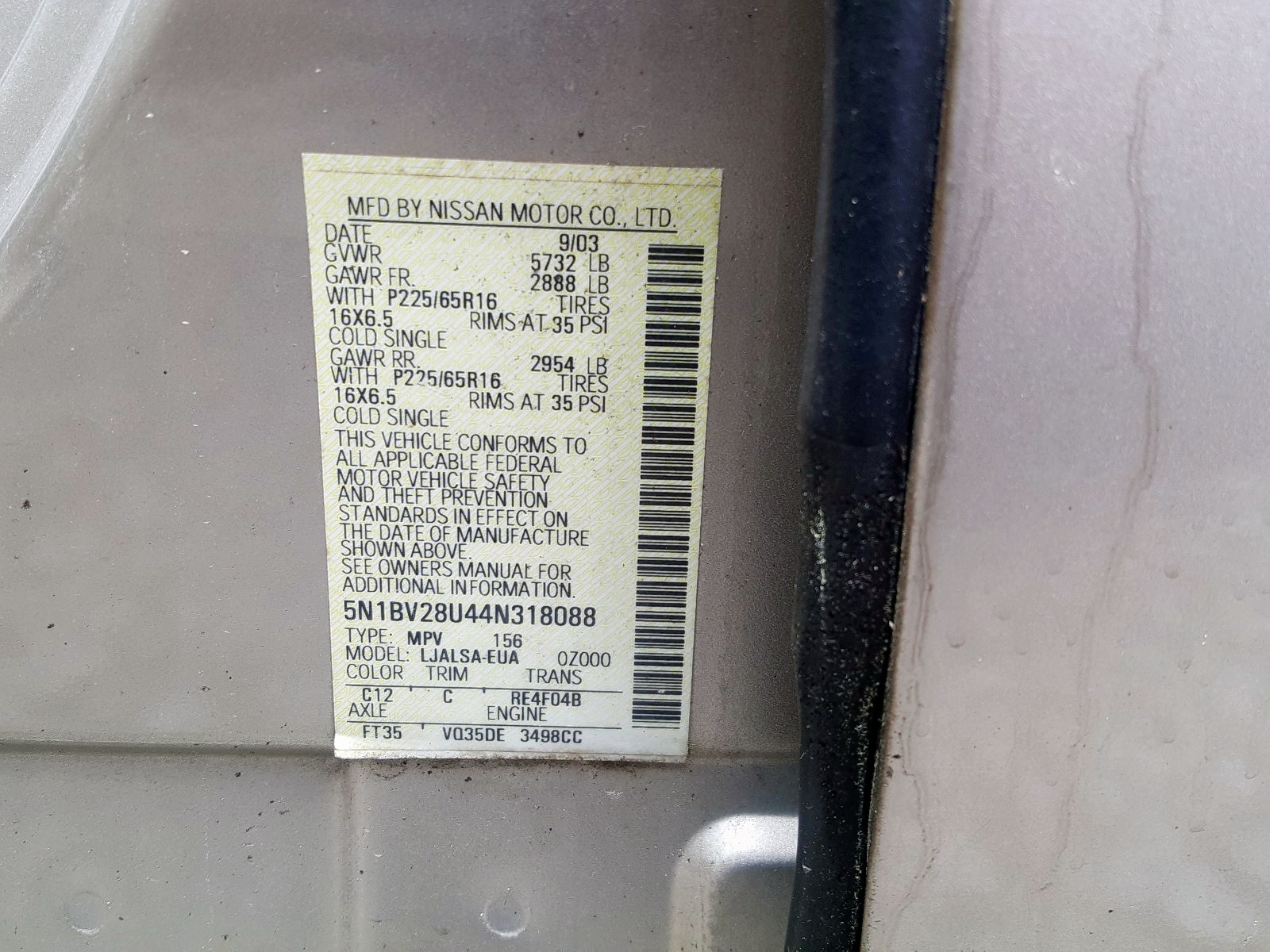 VIN: 5N1BV28U44N318088