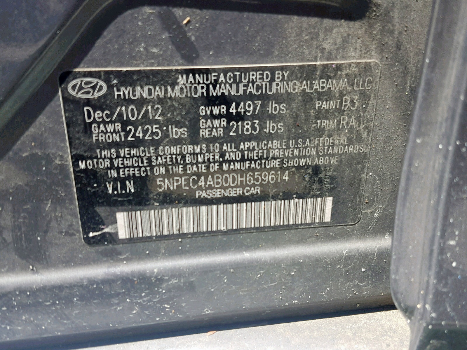 VIN: 5NPEC4AB0DH659614
