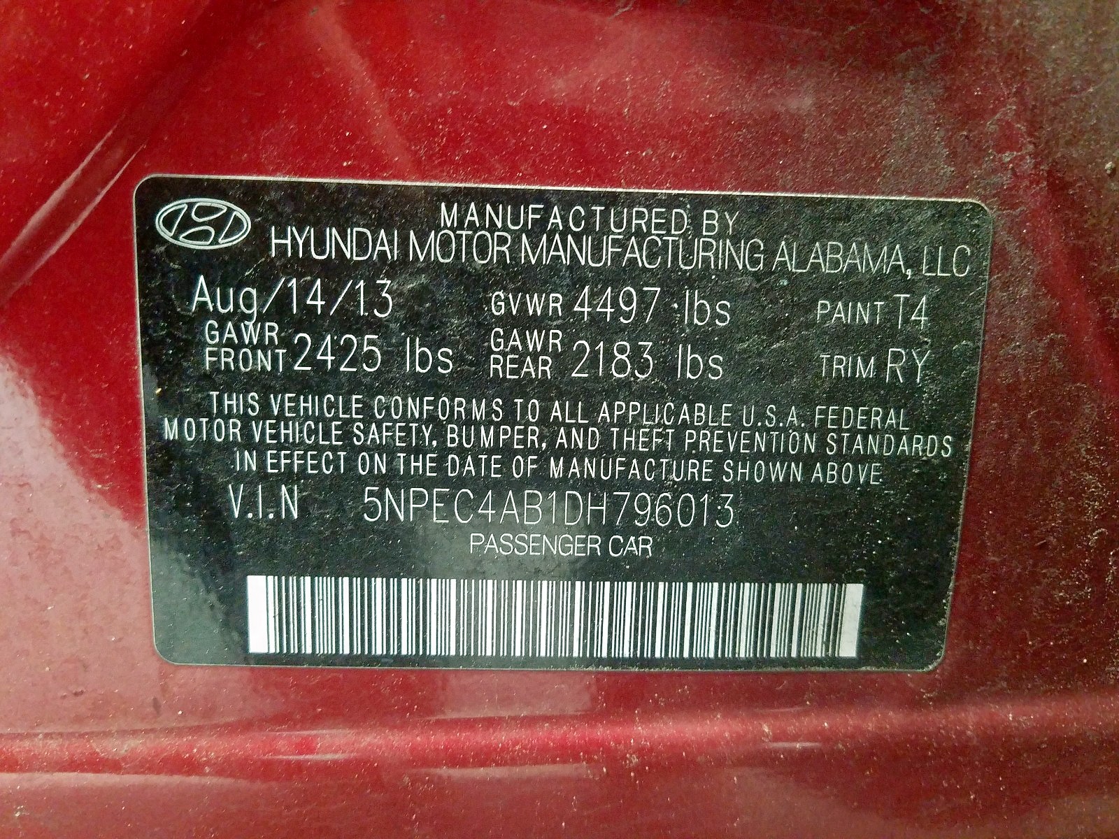 VIN: 5NPEC4AB1DH796013