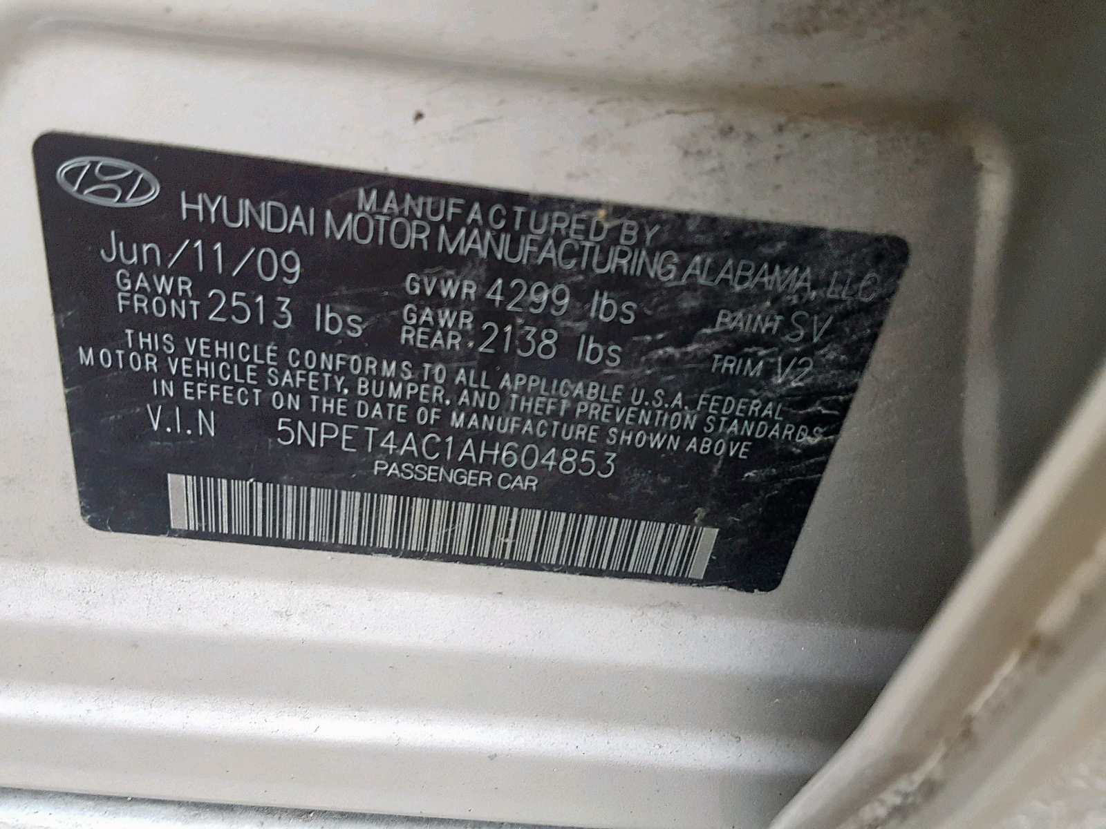 VIN: 5NPET4AC1AH604853