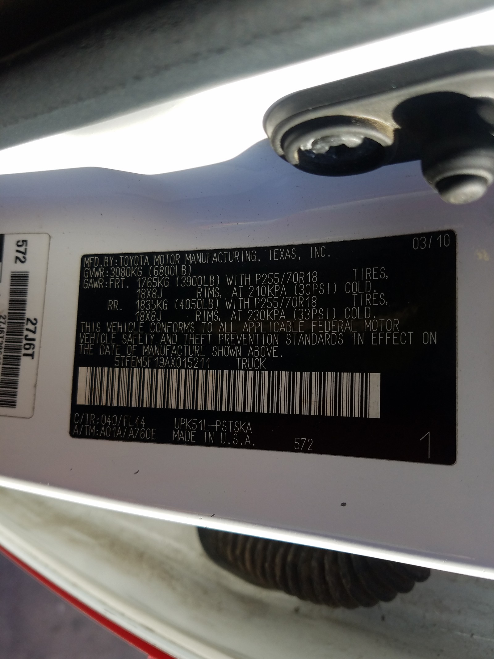VIN: 5TFEM5F19AX015211