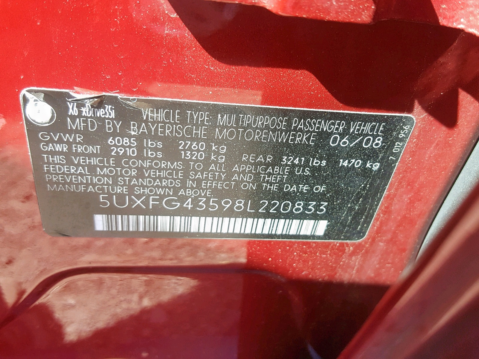 VIN: 5UXFG43598L220833