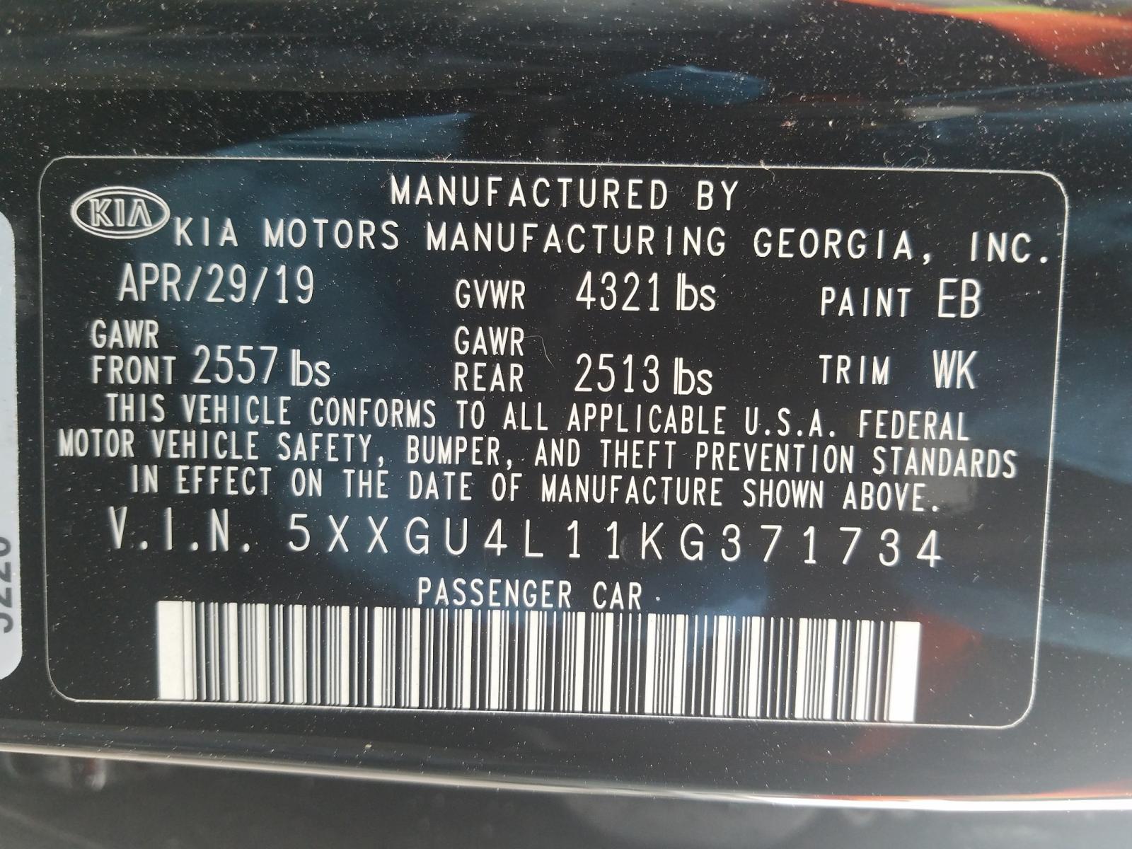 VIN: 5XXGU4L11KG371734