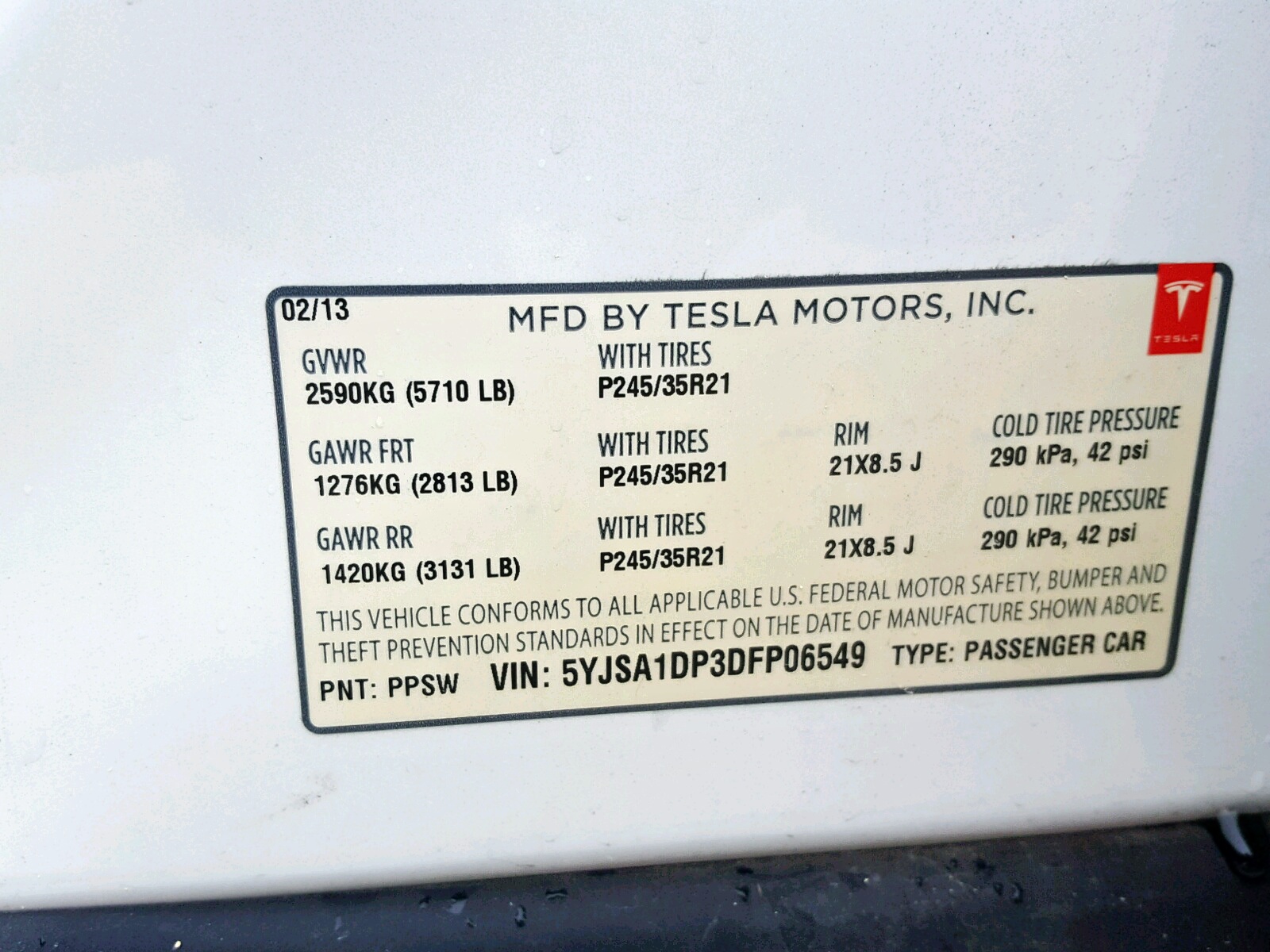 VIN: 5YJSA1DP3DFP06549